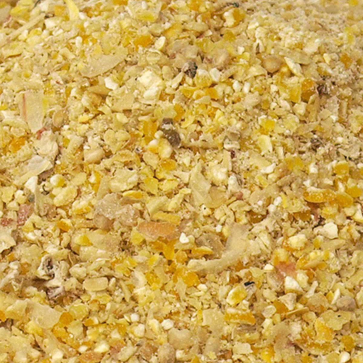 Compoziție: griș de porumb, făină de extracție de soia (fasole), ulei de floarea-soarelui, carbonat de calciu, fosfat monocalcic, clorură de sodiu.