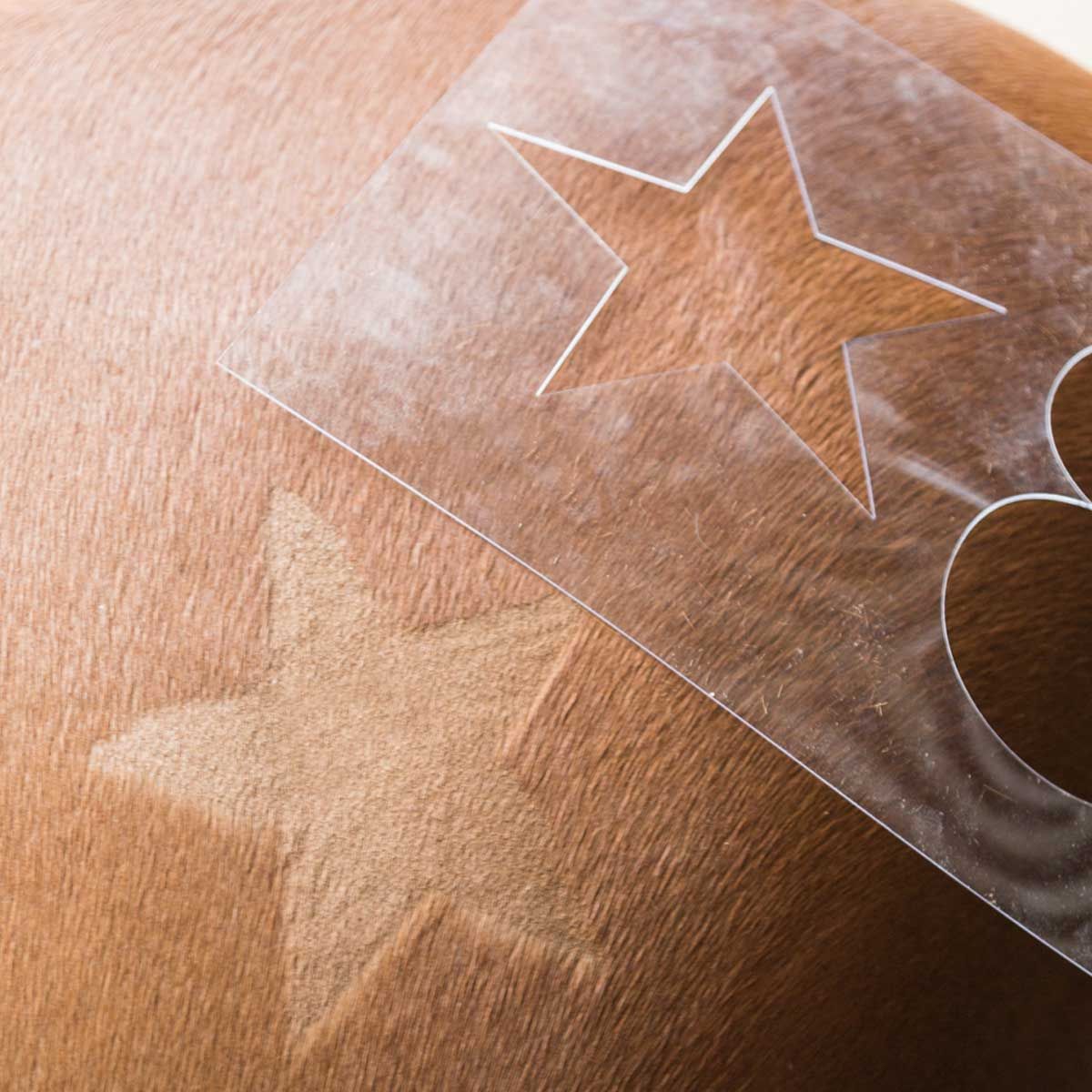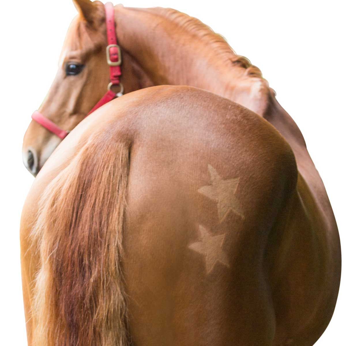 Aceste șabloane frumoase pentru tunderea cailor sunt versatile și pot fi folosite pentru tundere, periere sau pulverizare. Materialul este din plastic de înaltă calitate și poate fi spălat cu ușurință. Setul este format din inimioare, stele și model Lillien.