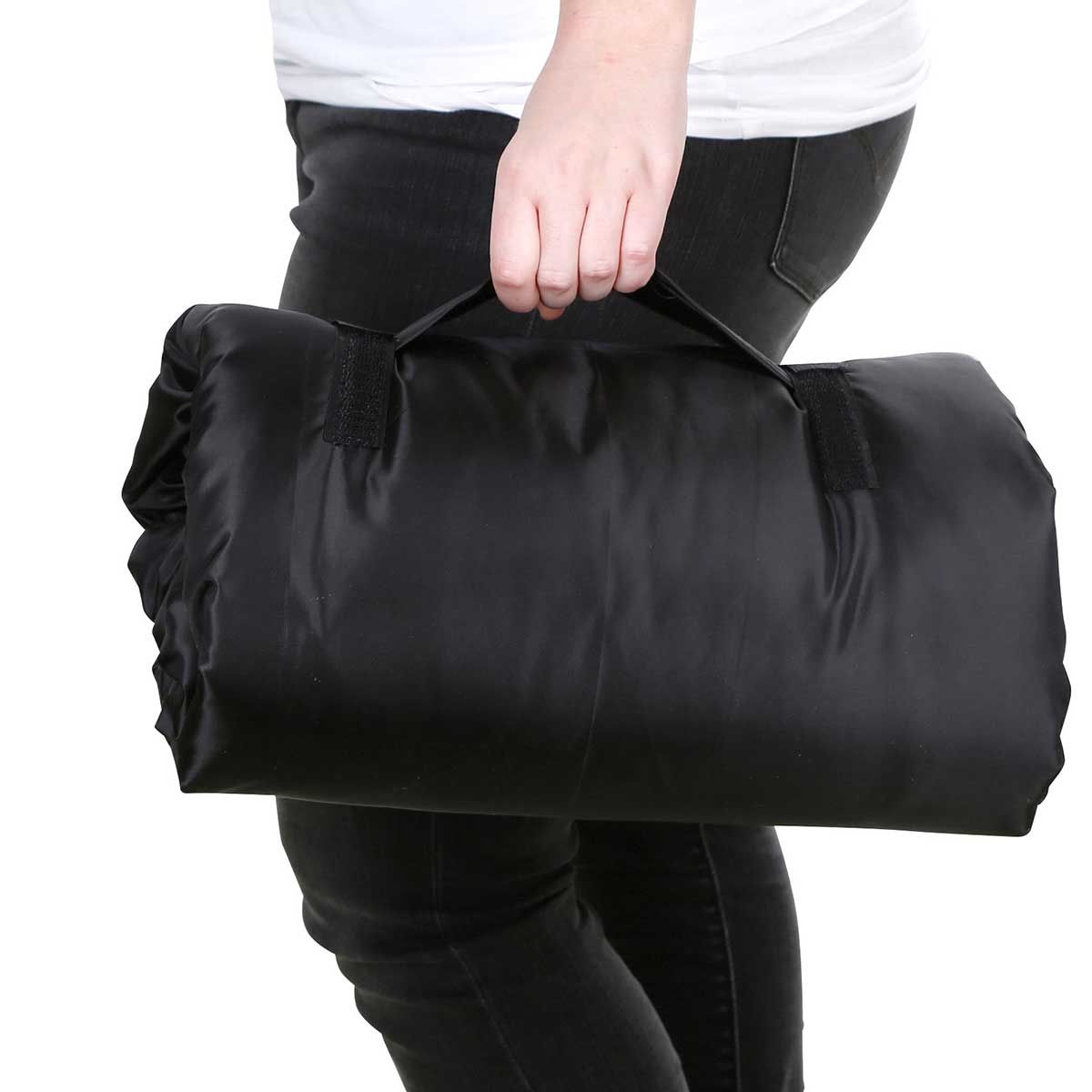 - schnell zusammenrollbar und fixierbar durch Klettverschluss