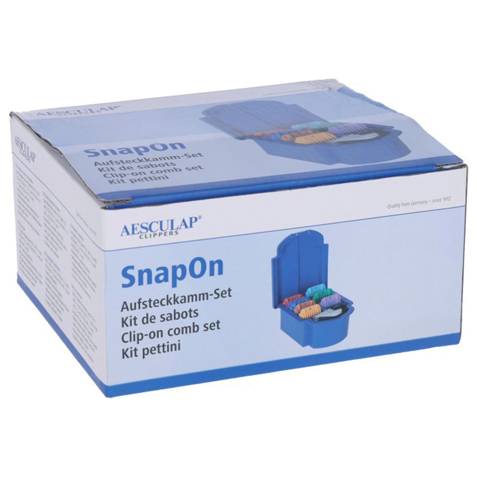 Cei 5 piepteni de atașare SnapOn pot fi atașați cu ușurință la capul de tuns și îndepărtați din nou. Pieptenele din oțel inoxidabil cu fixare rapidă alunecă ușor și eficient prin blană datorită dinților lor subțiri din metal. Nu se prinde în haină și nu se îndoaie dinții. Rezultatul pieptenilor cu atașament de la Aesculap este o tundere uniformă. Setul de tundere potrivit pentru fiecare lungime de blană.