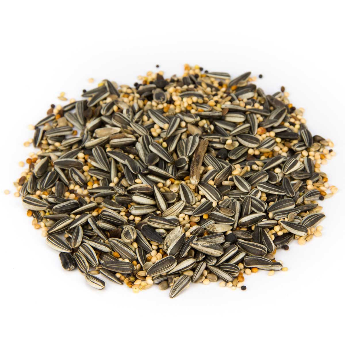 Compoziție: 35 % floarea-soarelui vărgată, 33 % mei galben, 10 % semințe lucioase, 7 % cânepă, 5 % mei roșu, 5 % nap negru, 2 % semințe de in, 2 % hrișcă, 1 % boabe de milo.