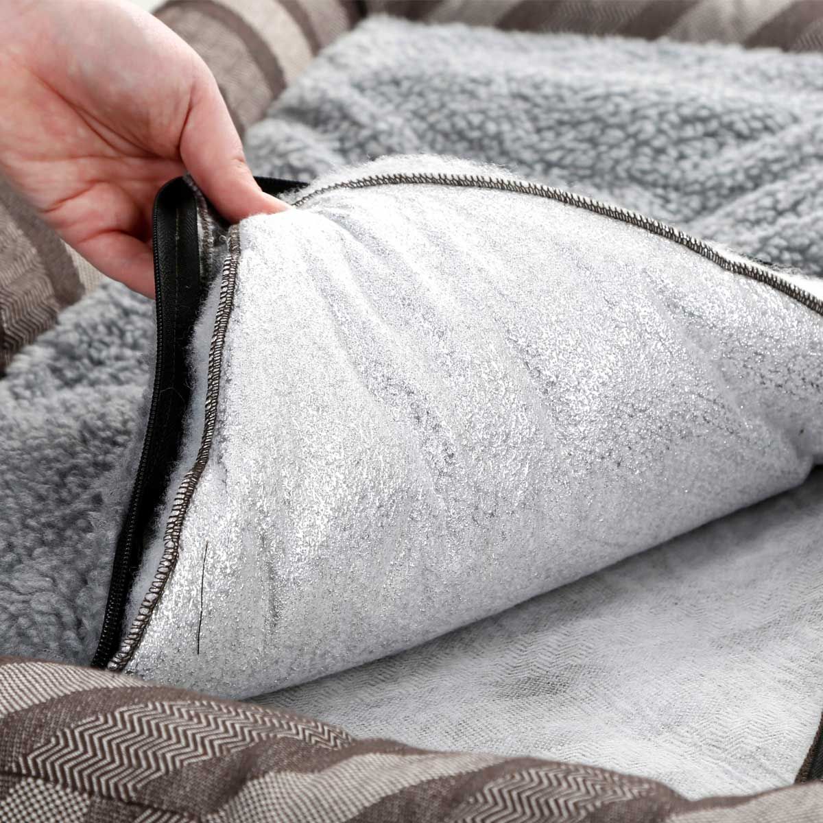 Die selbstwärmende Liegefläche reflektiert die Körperwärme des Hundes und weist gleichzeitig die Kälte vom Fußboden ab.