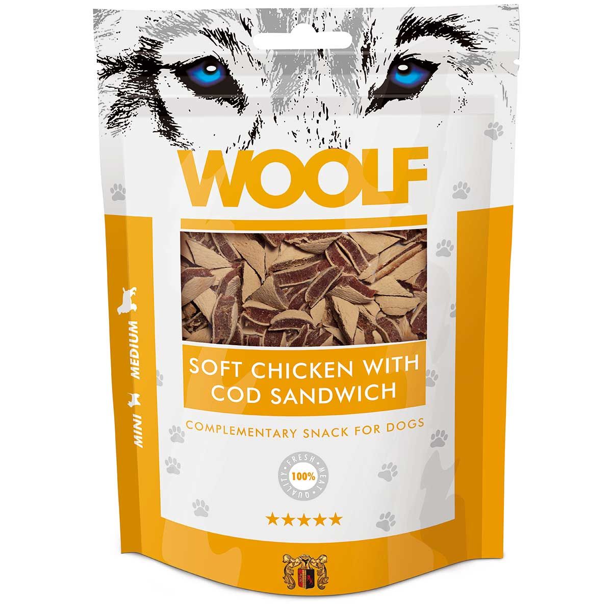 Woolf Sandwich pentru câini cu pui și cod 100 g