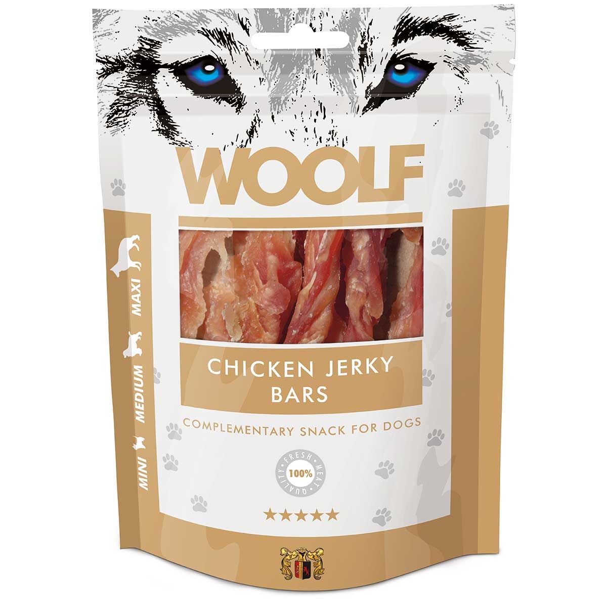 Bunătățile sănătoase de la WOOLF sunt o recompensă gustoasă pentru fiecare câine. Complet naturale și îmbogățite fără aditivi, gustările pentru câini sunt completarea perfectă a unei diete sănătoase. Bunătățile aromate sunt fabricate din ingrediente 100% naturale, asigurând o calitate ridicată și cea mai bună absorbție a nutrienților. Hrana suplimentară pentru câini este ambalată delicat după ce este gătită, fără aditivi chimici, conservanți sau coloranți. Fiecare pachet este prevăzut cu un sigiliu practic de prospețime și un absorbant de oxigen pentru a asigura conservarea și a menține produsul proaspăt pentru mai mult timp.