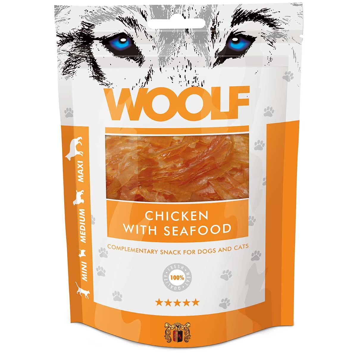 Woolf tratament pentru câini pui cu fructe de mare 100 g