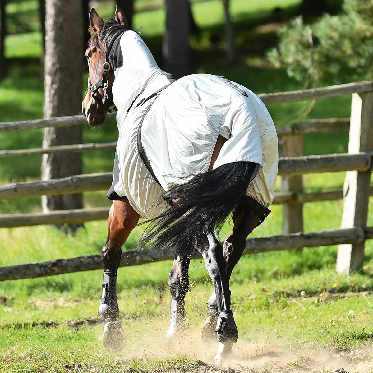 Depending on the weather conditions, the right blanket model should be chosen to protect the horse from overheating or cold. Waterproofing can be crucial if necessary - you can find information on this in our guides. When kept in groups, the ideal fit of the blanket can be jeopardized by members of the same species. We recommend adjusting the ceiling control distances accordingly.