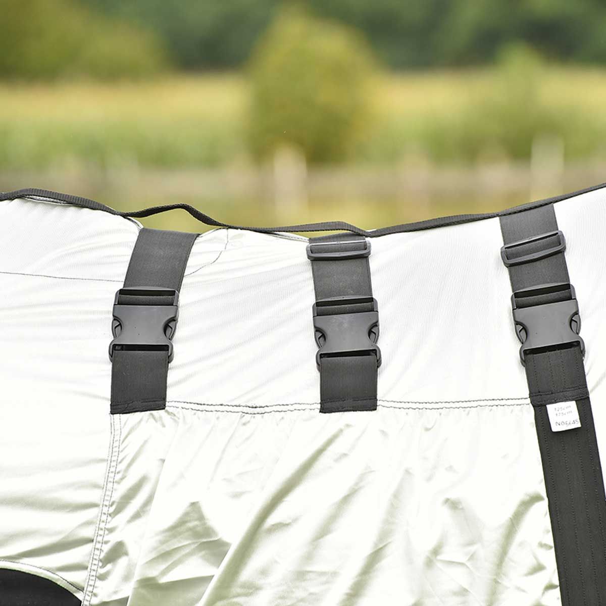 For the final adjustment of a horse blanket, the adjustment options on the product should be used, as incorrect application can lead to damage. Even with optimal adjustment, regular checks of the fit are essential. Check that the blanket fits correctly, the Velcro fasteners are clean (to avoid chafing) and the blanket is intact.