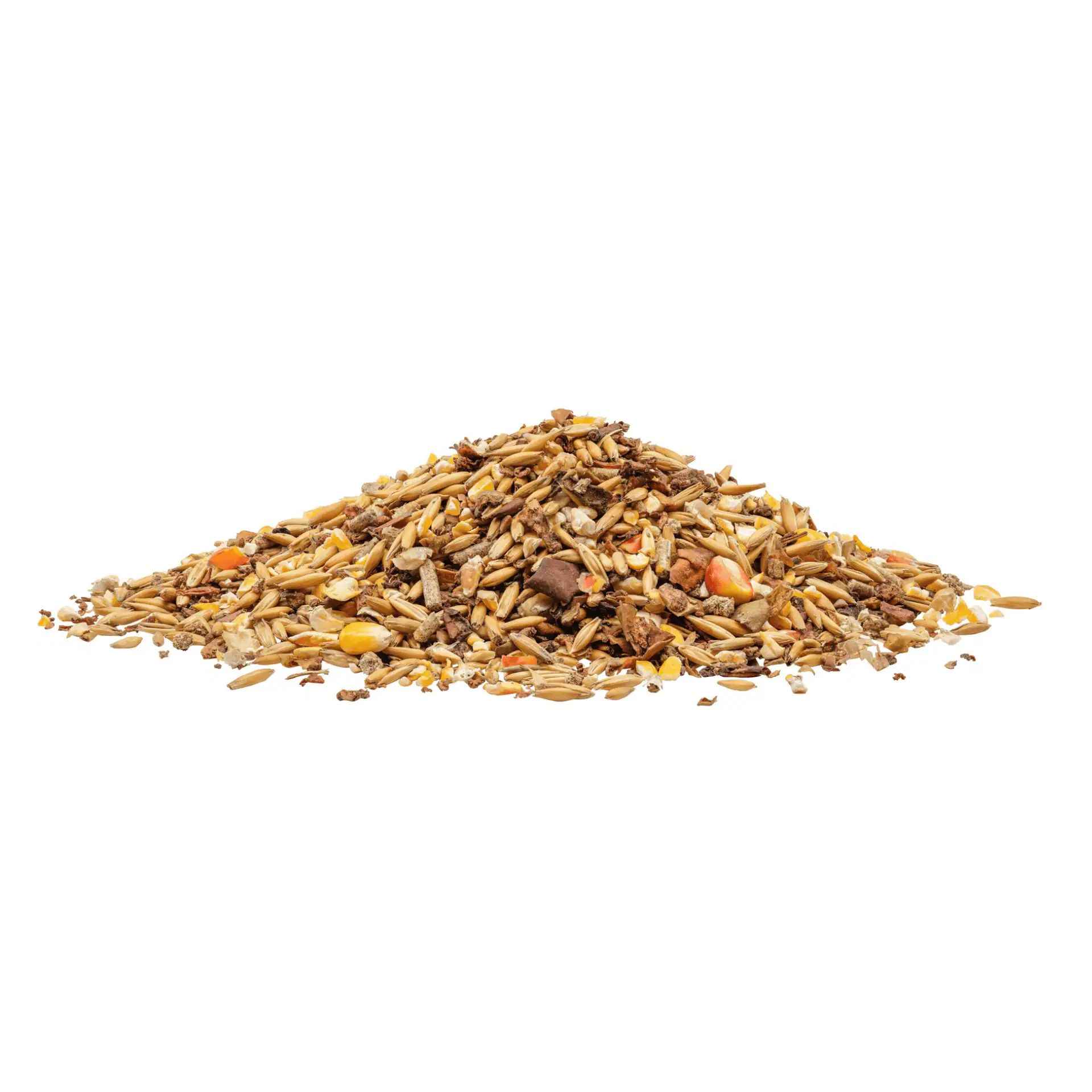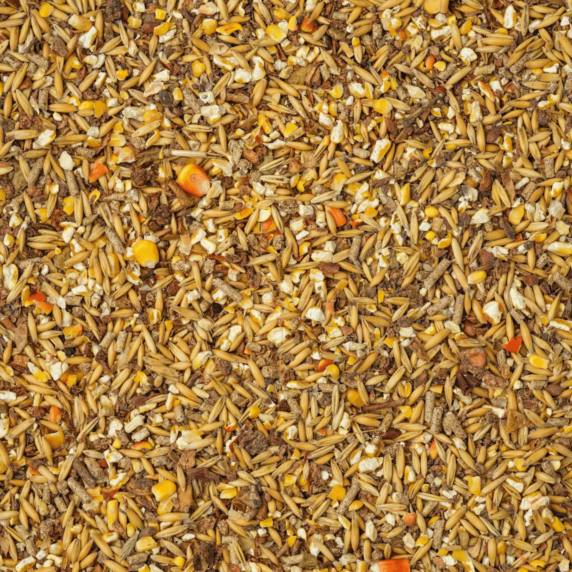 Ovăz, porumb măcinat grosier, tescovină de mere, făină de extracție de susan, făină de extracție de canola cu baton, fosfat monocalcic, făină verde, carbonat de calciu, boabe de soia, turtă de semințe de dovleac, ulei de floarea-soarelui, melasă, clorură de sodiu, oxid de magneziu, drojdie de bere