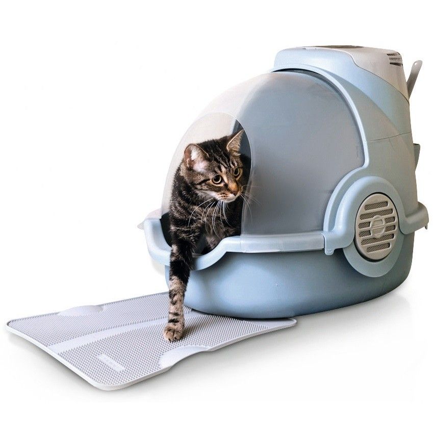 Die Geruch entfernende Bionaire™ Katzentoilette ist ein Muss für alle, die den Geruch von Katzenstreu vermeiden möchten. Sie ist auf einzigartige Weise so konstruiert, dass sie automatisch durch einen Lüfter mit geringem Stromverbrauch Staub und Gerüche in einen aktivierten Kohle- und Zeolith-Filter transportiert und somit unangenehme Gerüche aus der Katzentoilette beseitigt. Die Katzentoilette verfügt über eine Rollhaube, um verstreutes Katzenstreu zu vermeiden und die Reinigung zu erleichtern, eine elektronische LED-Anzeige, die anzeigt, wenn der Filter ausgewechselt werden muss.