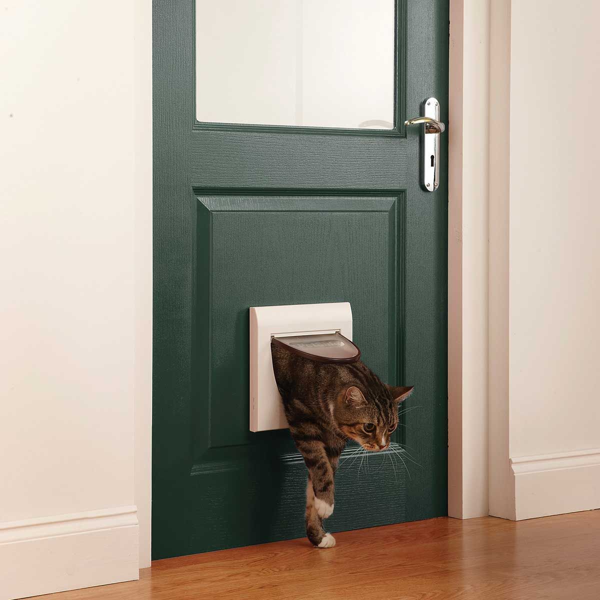 Die Petsafe Katzenklappe Staywell 919 ist eine klassische Katzentür mit 4 Verschlussoptionen und ideal für einfach verglaste und dünne Türen.