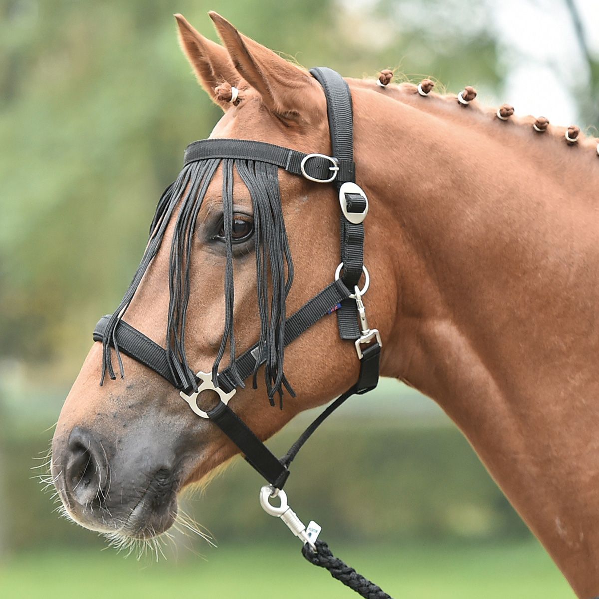 Bentiță de frunte cu franjuri pentru muște, unică sau bicoloră, este confecționată din material ușor de întreținut, cu catarame foarte ușor de atașat la halebardă.