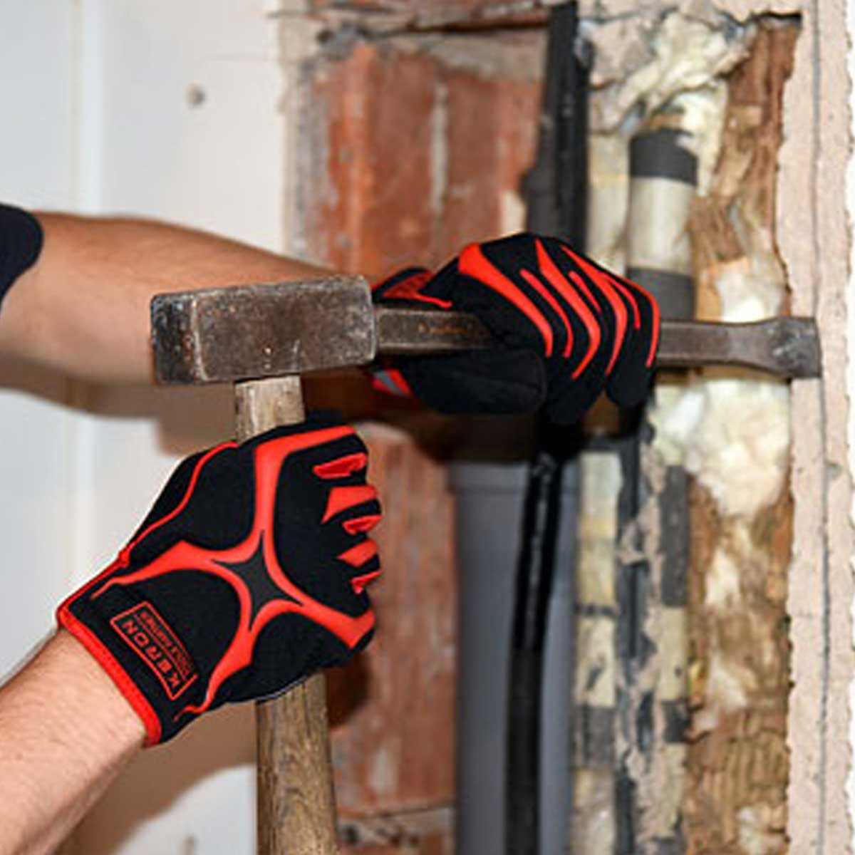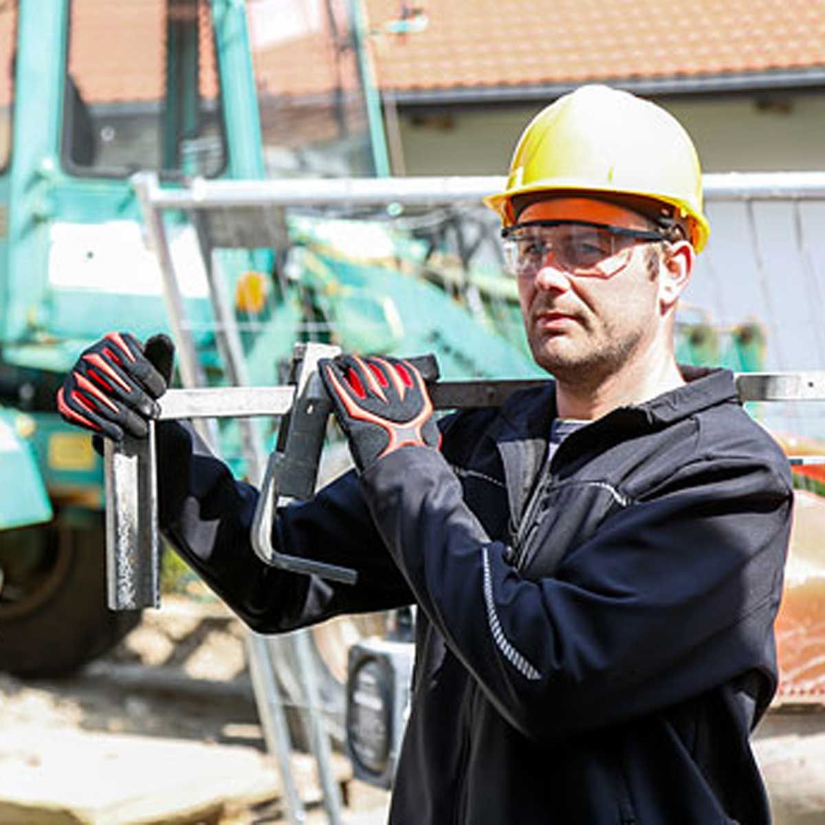 Protectorii TPR de pe spatele mănușii absorb șocurile, iar suprafața este canelată pentru a proteja țesătura împotriva ruperii. Secțiunile ranforsate de pe palmă asigură o durată de viață mai lungă, în special atunci când se lucrează cu frânghii. Amortizorul de vibrații de pe palmă absoarbe șocurile și protejează astfel mâna. Palmele mănușii de lucru sunt acoperite cu un strat de microfibre de 1 mm grosime, moale și lavabil. Închiderea cu velcro asigură o potrivire perfectă și protejează împotriva căderii obiectelor străine.