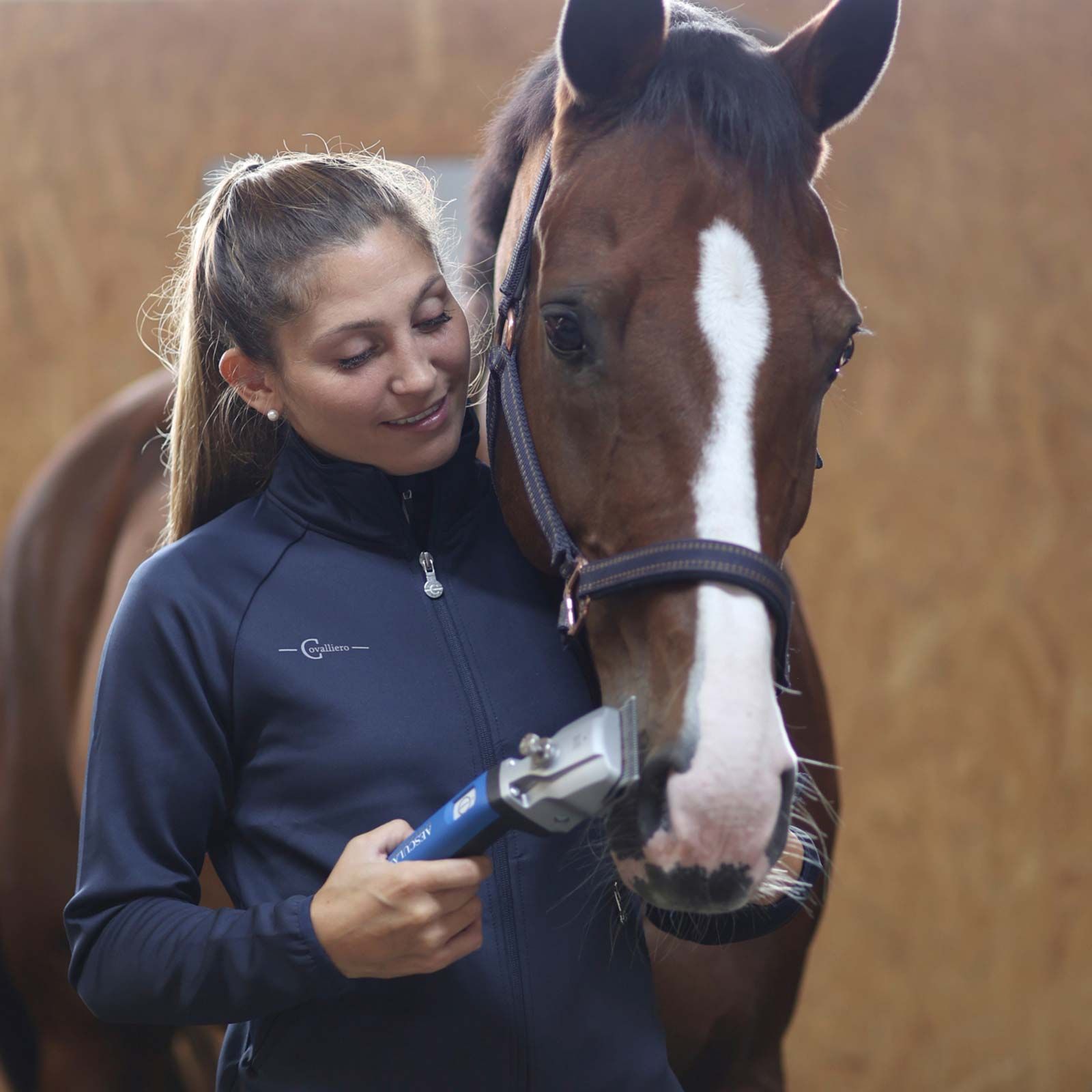 În timpul iernii, caii și poneii au o haină blană și caldă de iarnă, care tinde să transpire mult în timpul antrenamentelor intensive. Transpirația face ca haina să fie umedă și calul poate răci. Dacă doriți să vă scutiți de grija de a călări pe uscat sau de transpirație, mașina de tuns cu baterii Aesculap Bonum este alegerea perfectă pentru tunderea cailor. Mașina de tuns tunde chiar și blana groasă a calului cu precizie și acuratețe. Performanțele bune ale bateriei de tuns cai garantează o putere de tundere ridicată. Datorită funcționării sale netede, este, de asemenea, populară pentru tunderea cailor nervoși.
