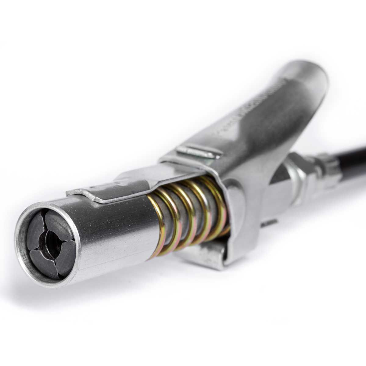 Poate fi conectat la toate pistoalele de ungere obișnuite: manuale, pneumatice și electrice (alimentate cu baterii). Adecvat pentru toate tipurile obișnuite de nipluri de unsoare în conformitate cu specificațiile DIN și SAE.