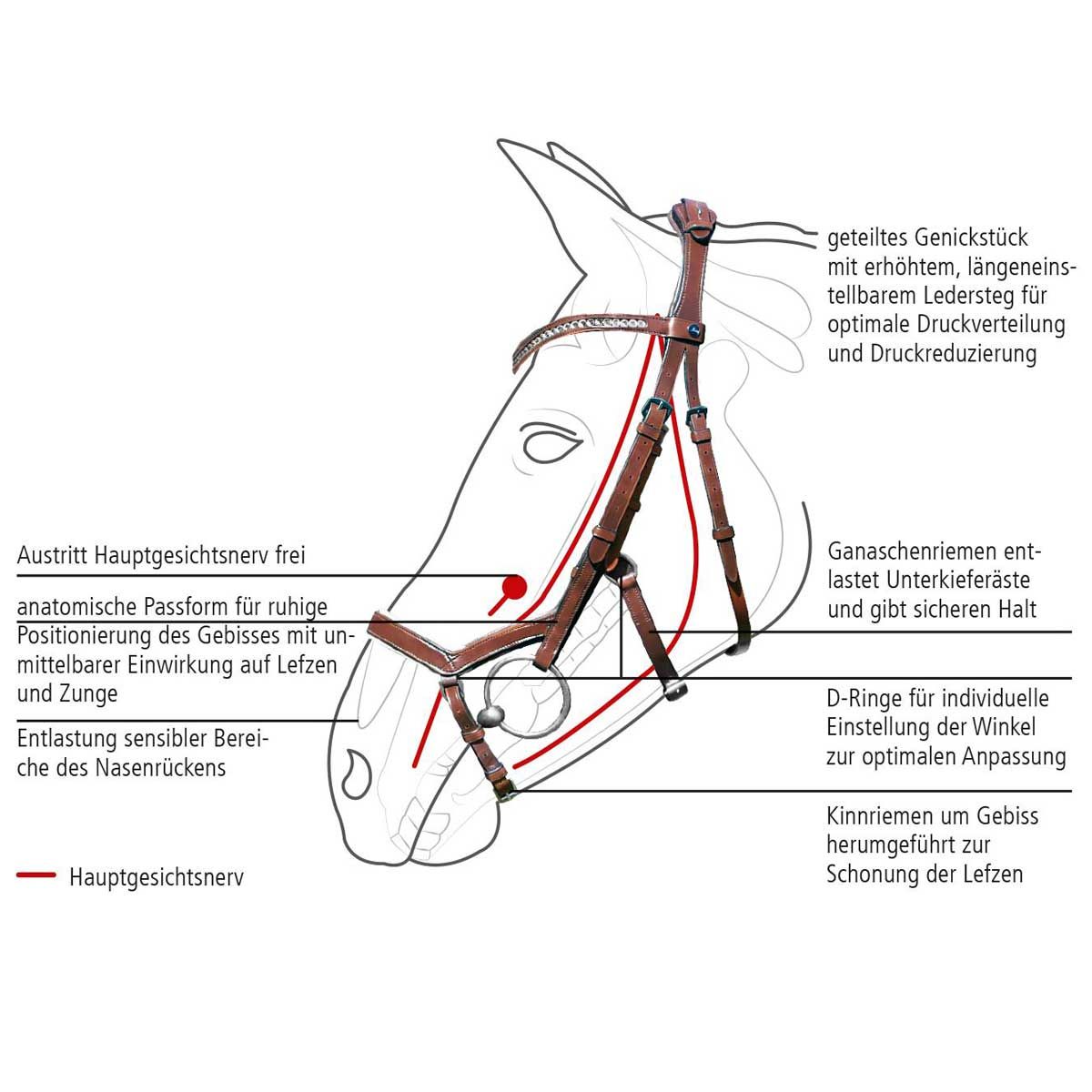 It is important to choose a model that suits the horse, its intended use and training goals. Since every area of application has special requirements, it can make sense to try out different bridles to find the ideal model. You can find detailed instructions for determining the size and fastening in our guide.