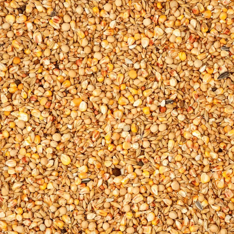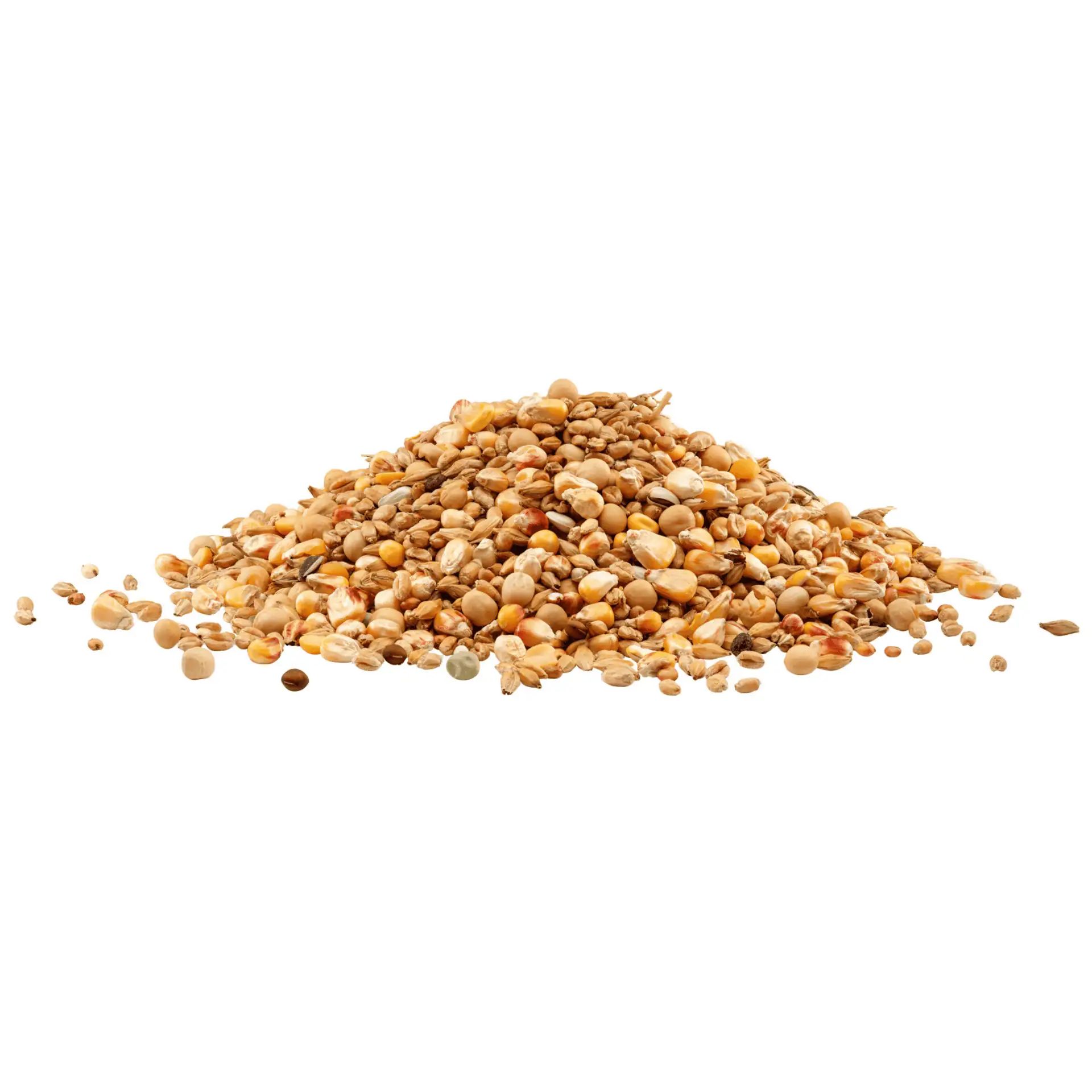 17 % orz, 5 % boabe de milo, 1 % semințe de cardi, 1 % vetches, 27 % grâu, 2 % dari, 34 % porumb furajer, 13 % mazăre mare