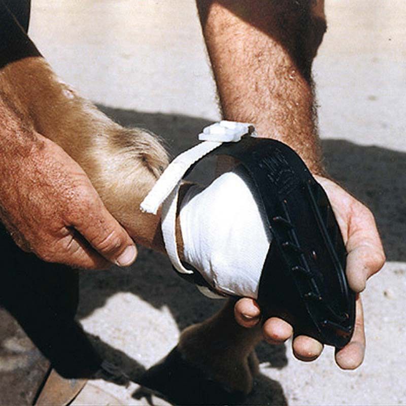 Această protecție pentru copite este fabricată din poliuretan robust și rezistent și este utilizată pentru tratarea rănilor sau inflamațiilor copitei. Potcoava este ușoară și foarte confortabilă pentru cal.