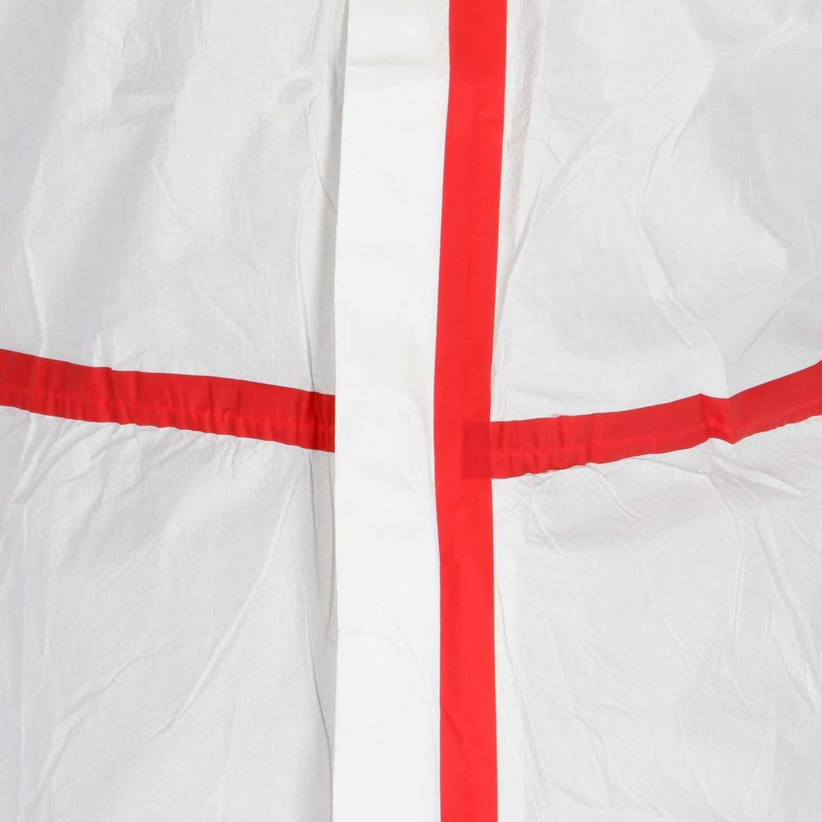 - Fabricată din laminat de polietilenă filată, adică țesătura filată din interior face ca acesta să fie confortabil de purtat, iar polietilena rezistentă la pulverizare la exterior