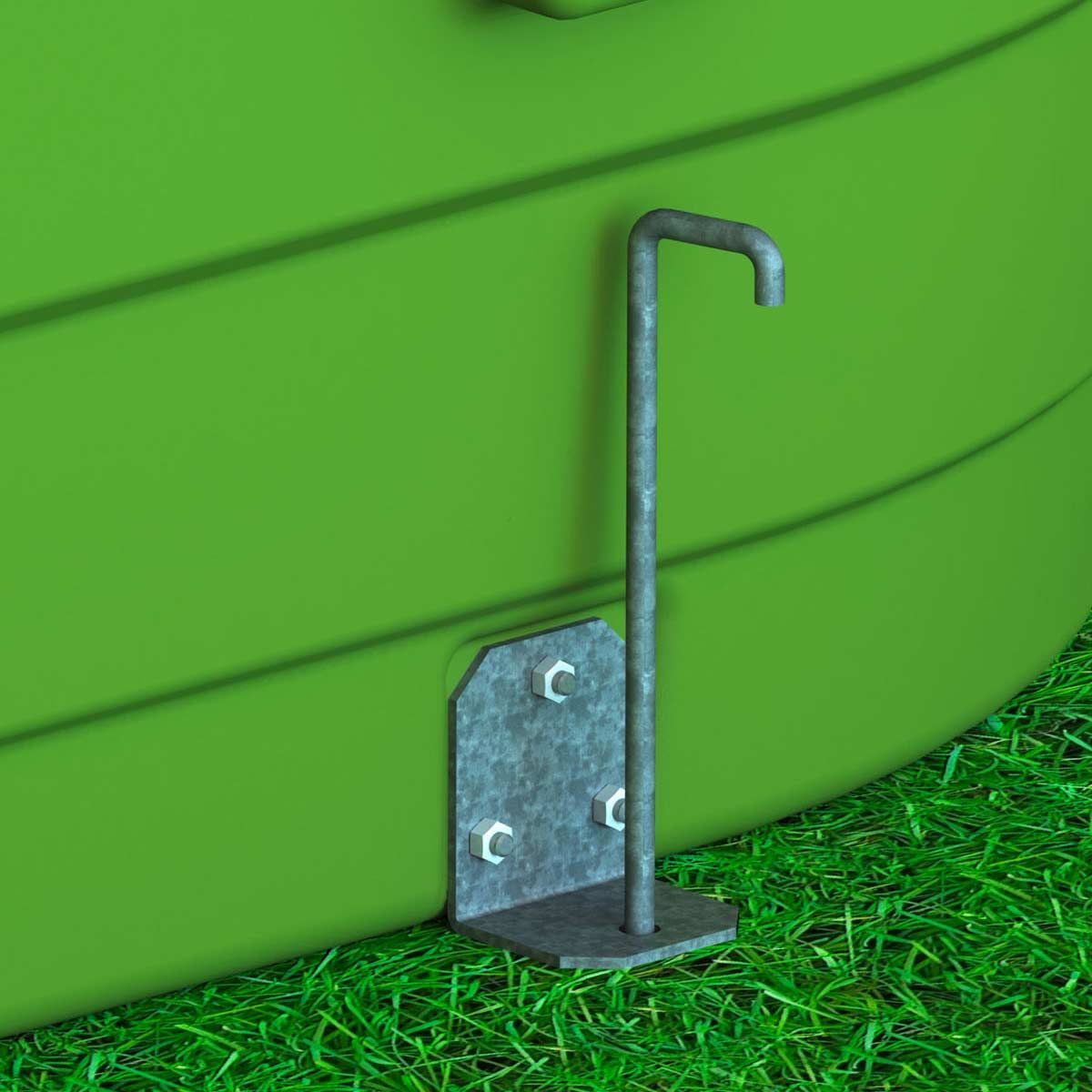 Pentru a ancora ferm în sol adăpătorul pentru vite și cai, este suficientă o ancorare la sol pe fiecare parte.