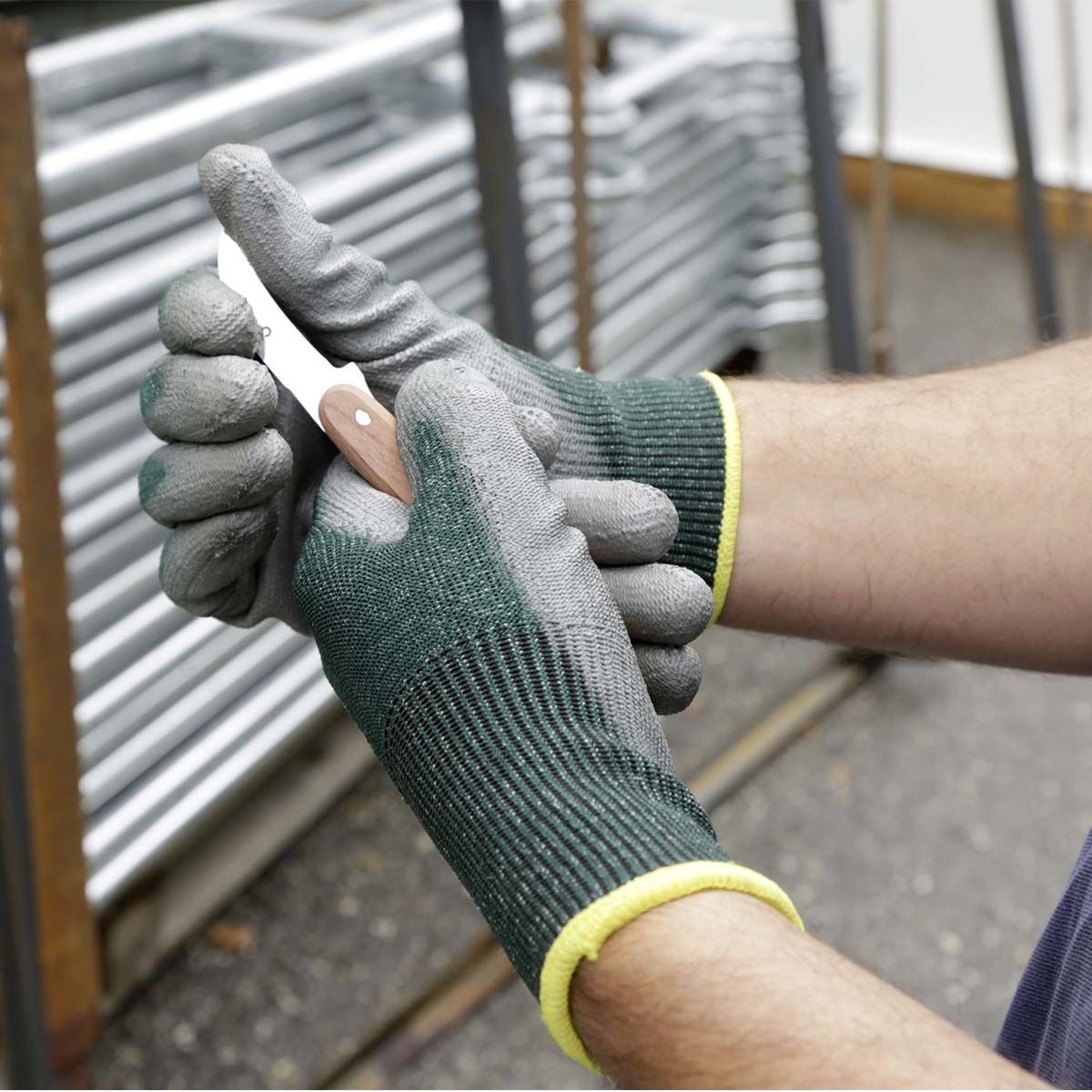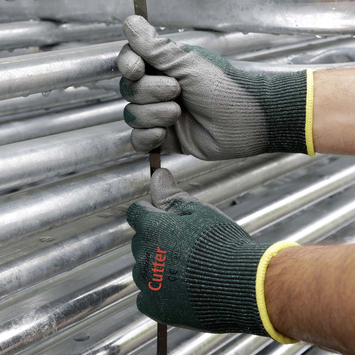 Mănușile de lucru Cutter sunt mănuși rezistente la tăieturi (15 gauge) fabricate din fibră de sticlă rezistentă la tăieturi, amestecată cu spandex și poliester pentru o elasticitate îmbunătățită.