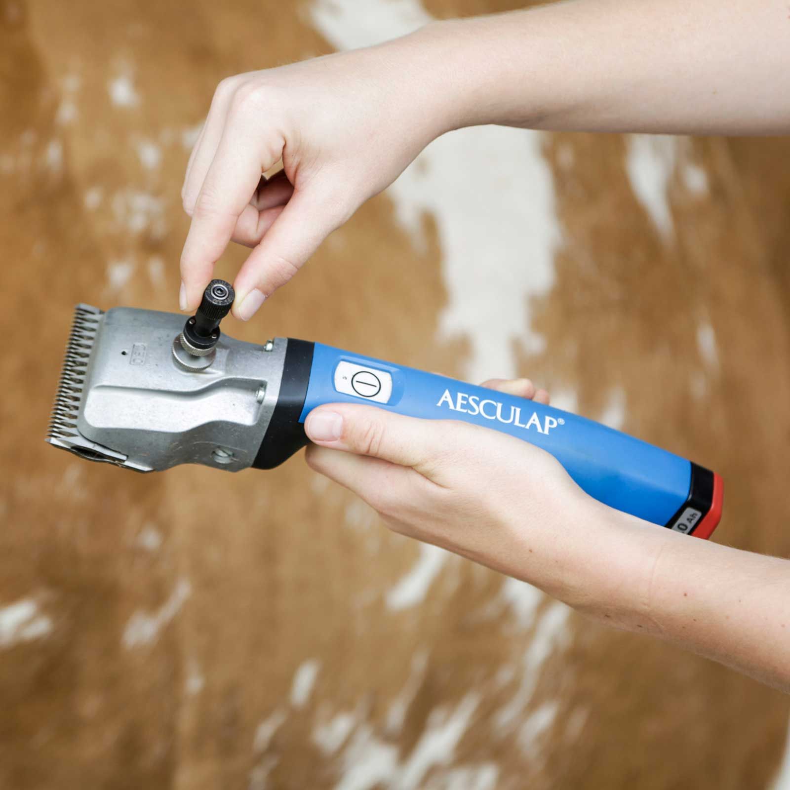 Această "cheie de torsiune" inovatoare face ca ajustarea presiunii plăcii de tundere de pe Aesculap pentru mașinile de tuns vite/calul să fie o joacă de copil.