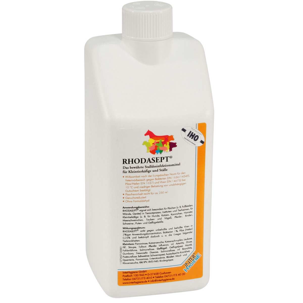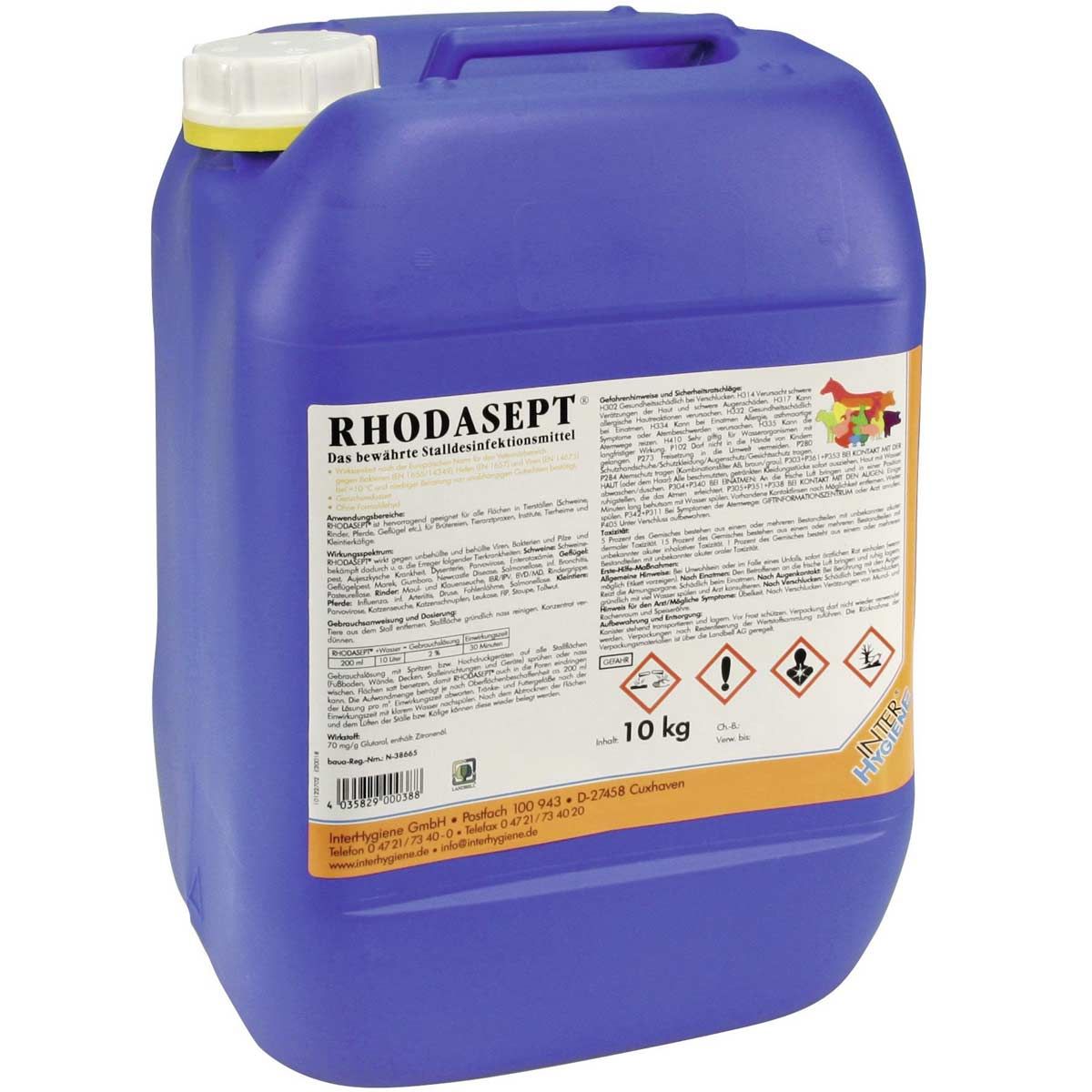 Dezinfectantul pentru grajduri RHODASEPT este ideal pentru dezinfectarea suprafețelor din zootehnie, cabinete veterinare, cuști pentru animale mici, vehicule de transport, cizme, covorașe etc.