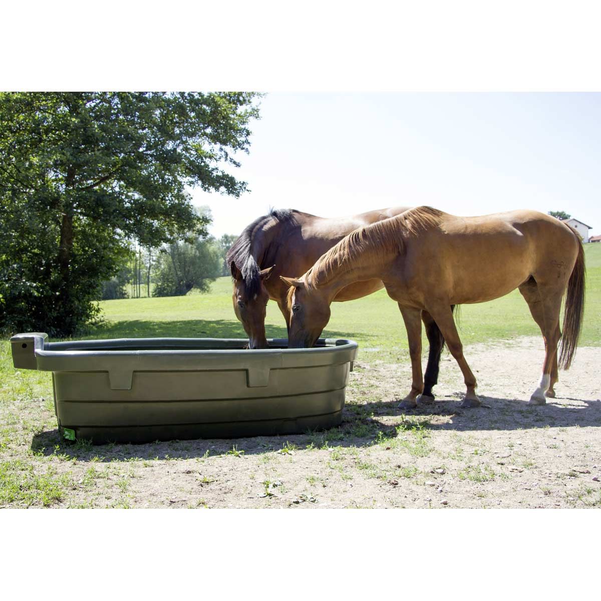Pentru a preveni răsturnarea adăpătorului de 1000 de litri, acesta poate fi ancorat la sol (accesoriile nu sunt incluse). Forma ovală a adăpătorului de pășunat îl face ușor de încărcat în dube. Adăpătoarele sunt, de asemenea, stivuibile și, prin urmare, deosebit de ușor de transportat. Canalul de scurgere mare permite o golire rapidă, iar suprafețele netede cu margini rotunjite facilitează curățarea, deoarece nu există zone inaccesibile.