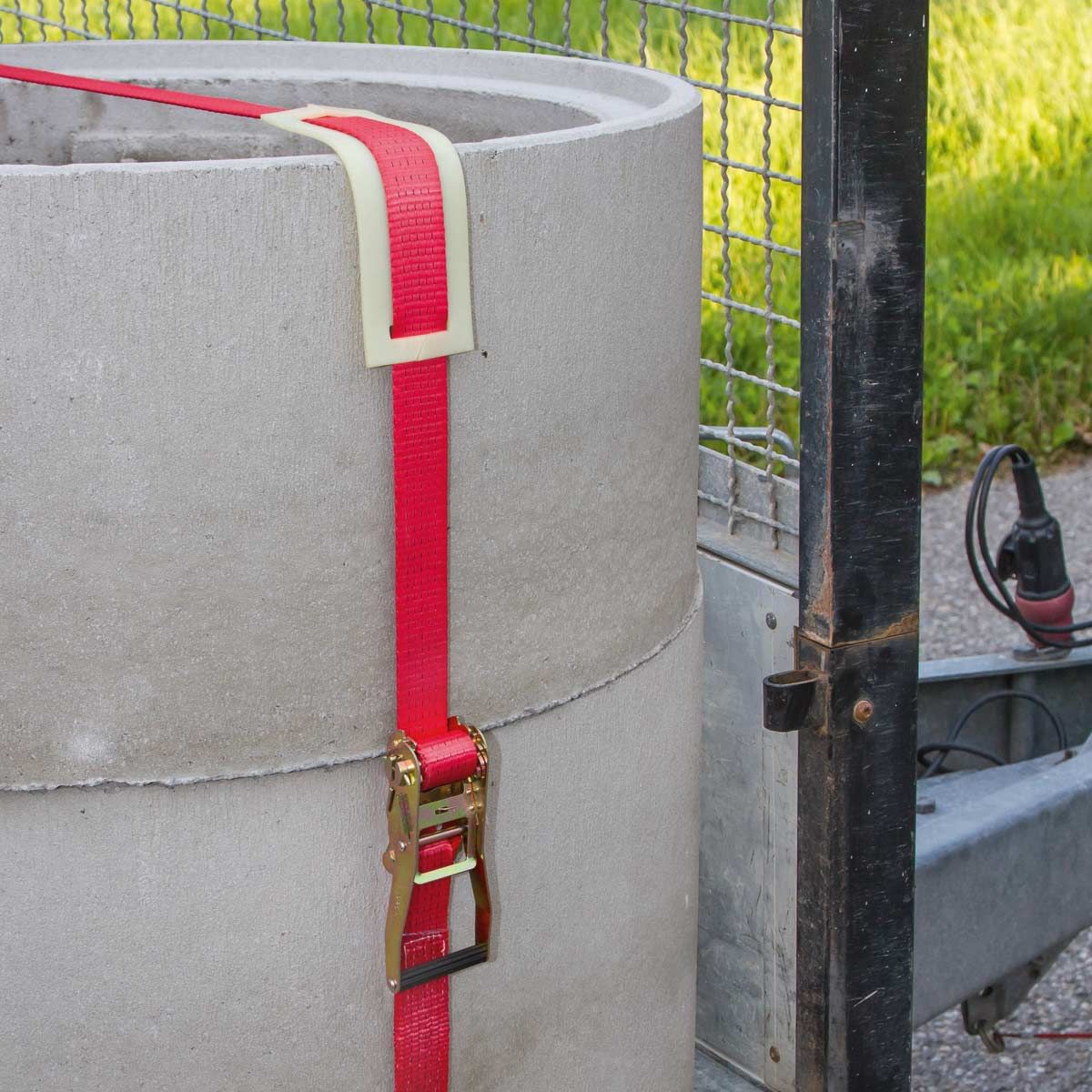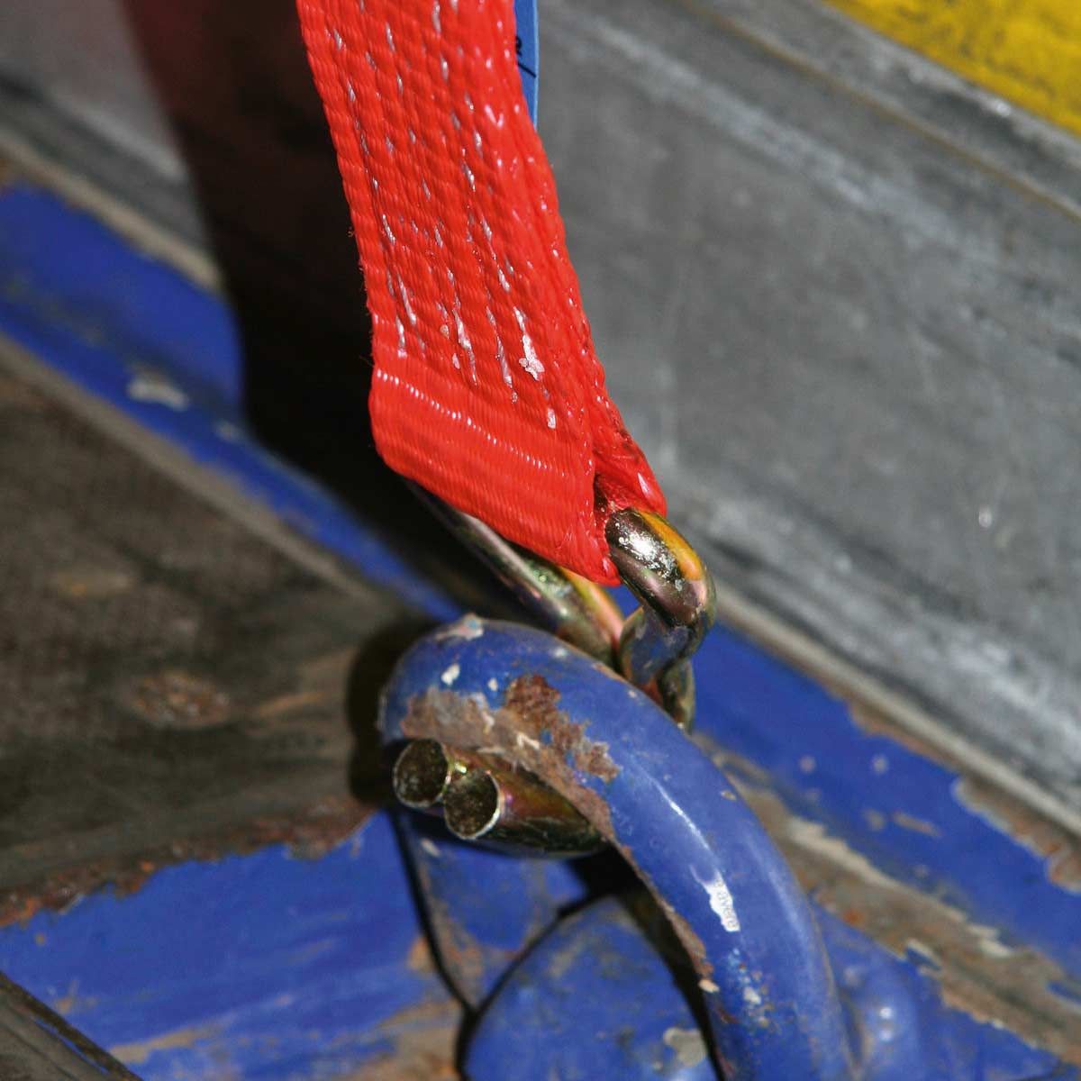 Această curea de ancorare cu clichet din două piese asigură forța de tracțiune admisibilă.