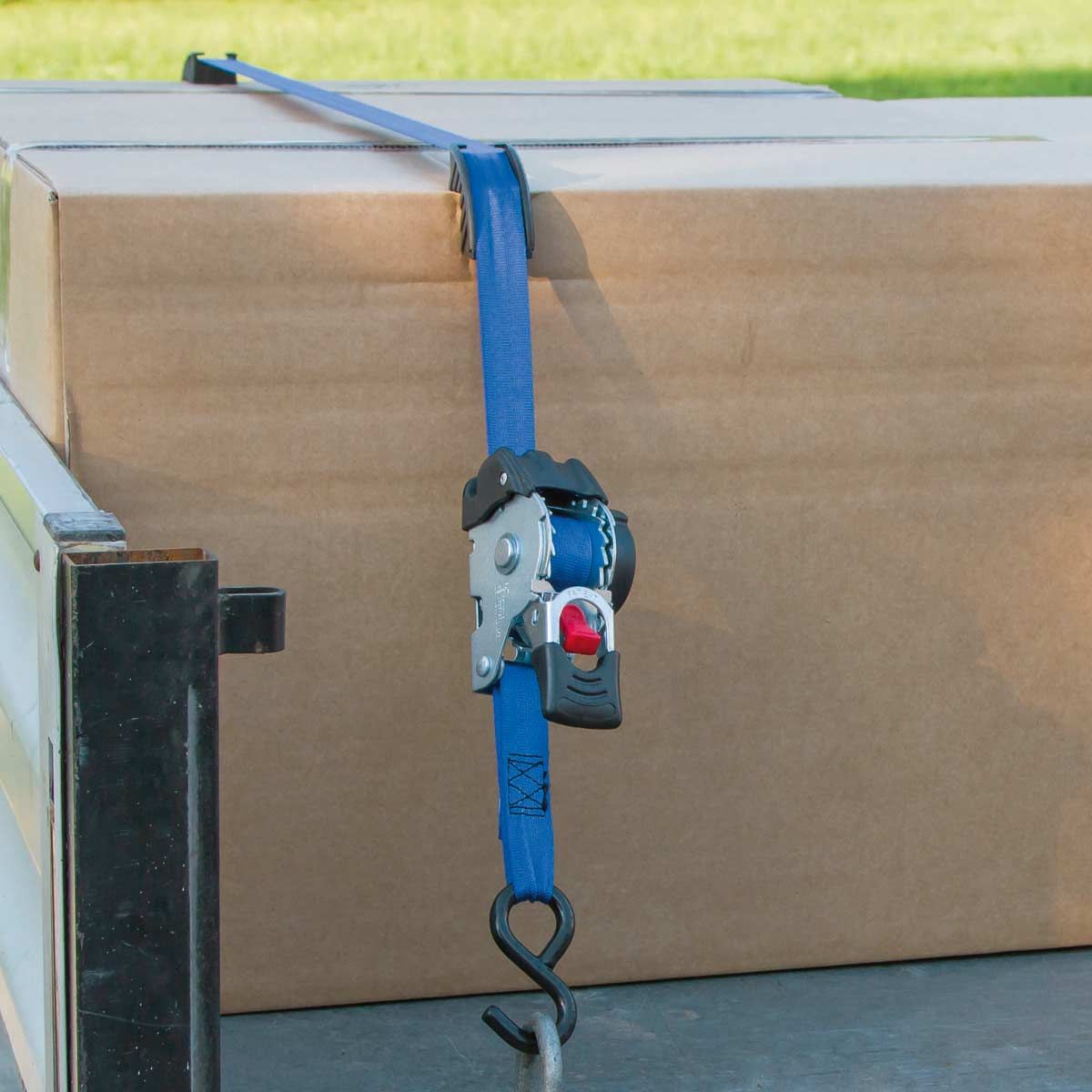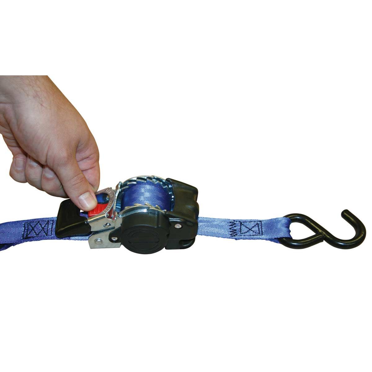 Cureaua de ancorare automată cu funcție de retragere 1,8 m x 25 mm cu cârlig S fixează încărcătura cu ușurință și rapiditate. Cureaua lungă de 1,8 m poate fi întinsă și retrasă pas cu pas. Retragerea curelei este foarte ușoară, prin simpla apăsare a unui buton. O curea de ancorare de înaltă calitate la un preț accesibil.