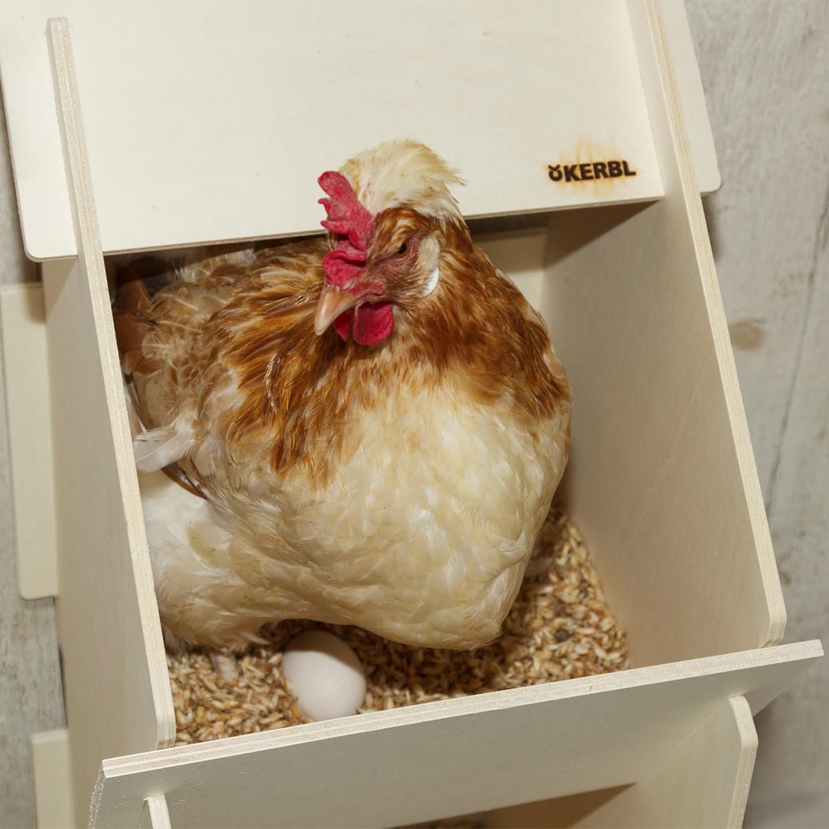 Cuibul de ouat din lemn de la Kerbl este fabricat din lemn natural de plop și este potrivit și pentru rasele grele de găini de până la 2 kg greutate vie. Cuibul din lemn Kerbl are o înălțime de 83 cm, iar etajele individuale ale cuibului sunt plăcut de spațioase, astfel încât chiar și rasele de găini mai mari își pot depune ouăle confortabil.