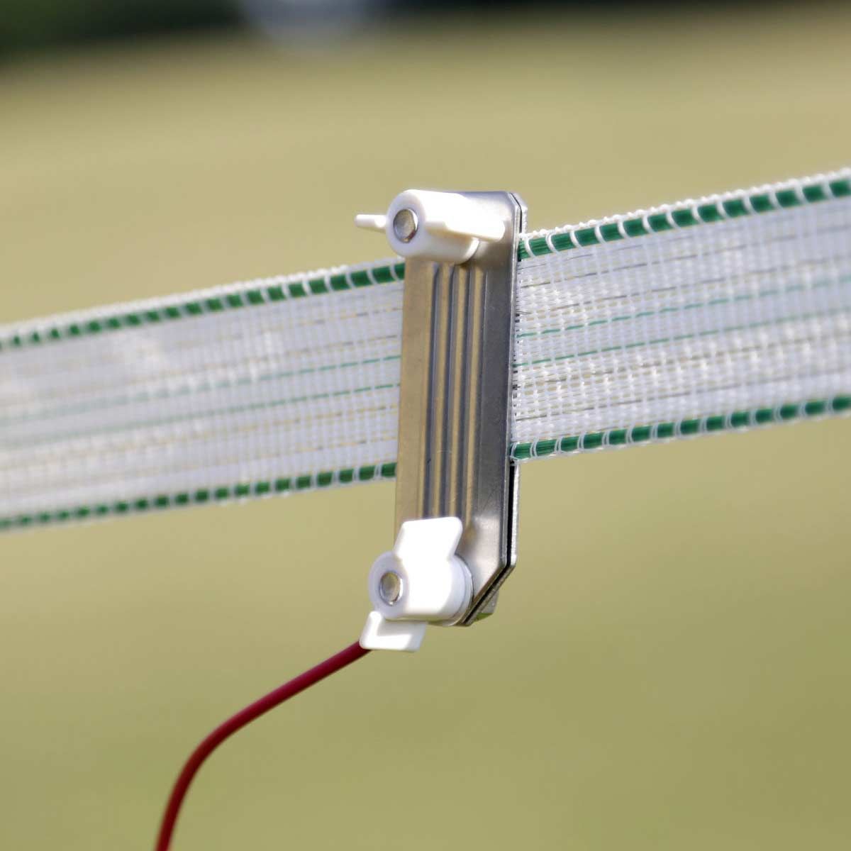 Cuplajul pentru bandă conectează gardul electric cu banda de gard electric. Conexiunea perfectă din punct de vedere mecanic și electric între două benzi de gard electric cu lățimea de până la 40 mm.