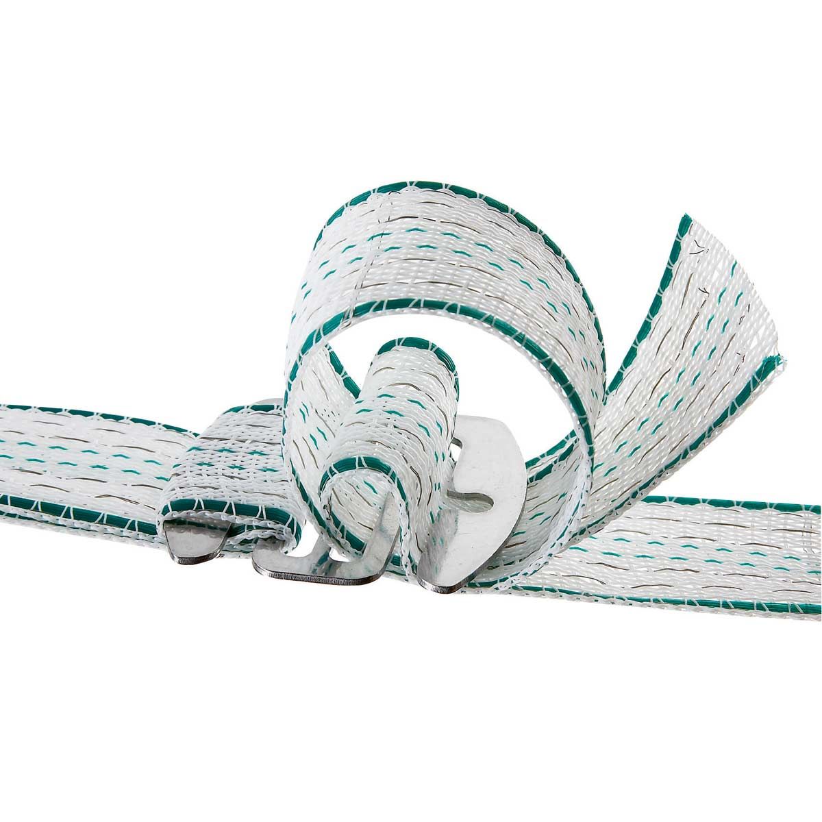 Pachetul nostru de 5 conectori cu panglică este o soluție ingenios de simplă, dar practică, pentru conectarea sau extinderea gardurilor de pășune. Placa de conectare din oțel inoxidabil este deosebit de potrivită pentru benzi late de până la 40 mm. Manevrarea conectorilor de bandă pentru garduri electrice este foarte simplă. Plăcile de conectare au ochiuri practice ca opțiune suplimentară pentru agățarea mânerelor de poartă sau pe un izolator de mâner de poartă. Contactul electric al benzilor îmbinate este perfect și asigură un gard electric de pășune rezistent la trecerea turmelor.