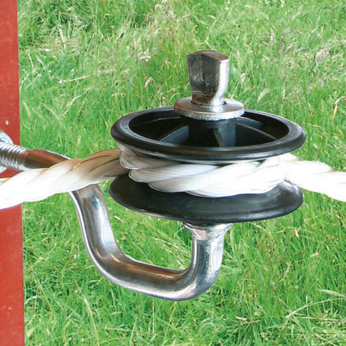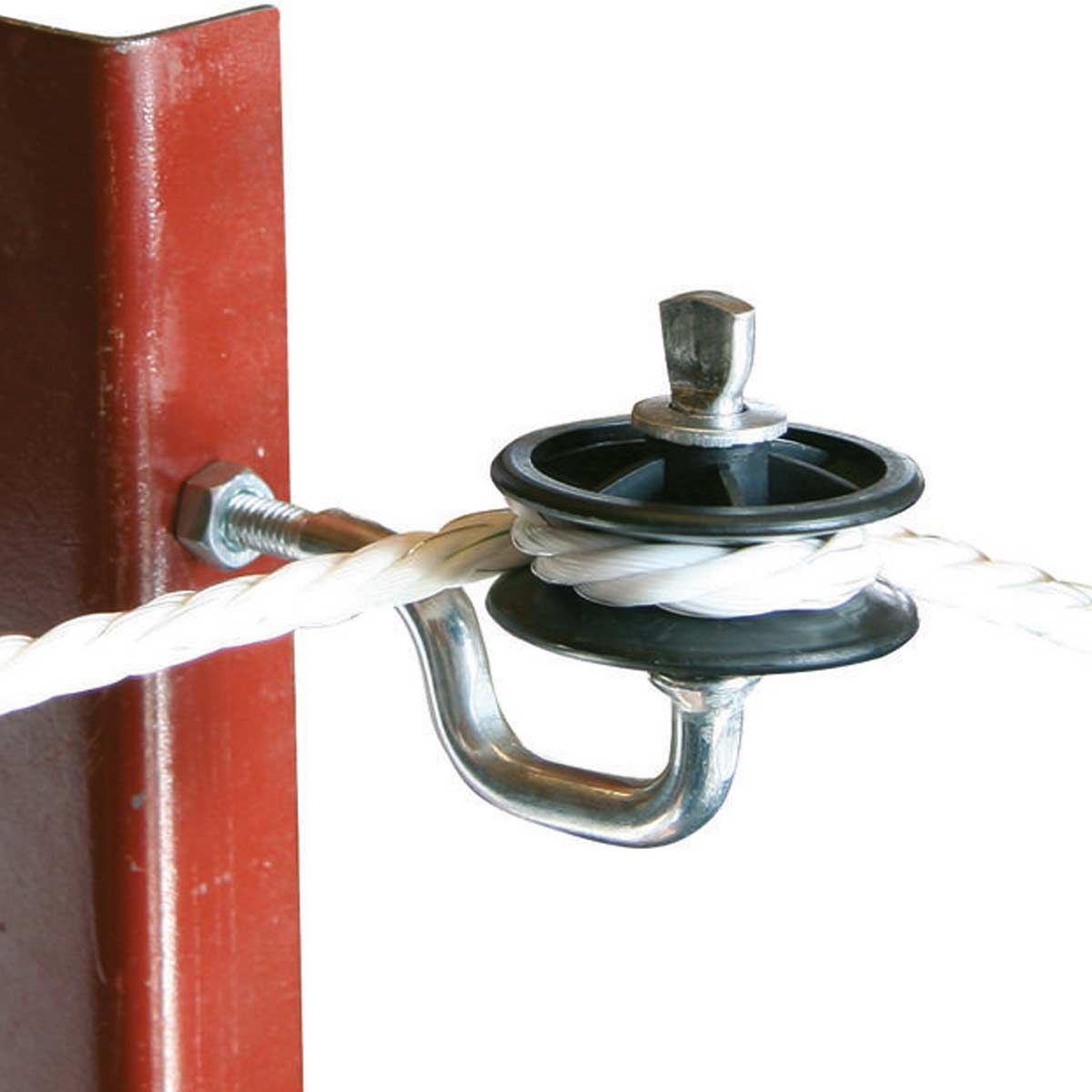 Rola de colț robustă permite o deviere lină a materialului de împrejmuire la colțurile gardurilor de pășune, pentru fire, sârmă și frânghii.