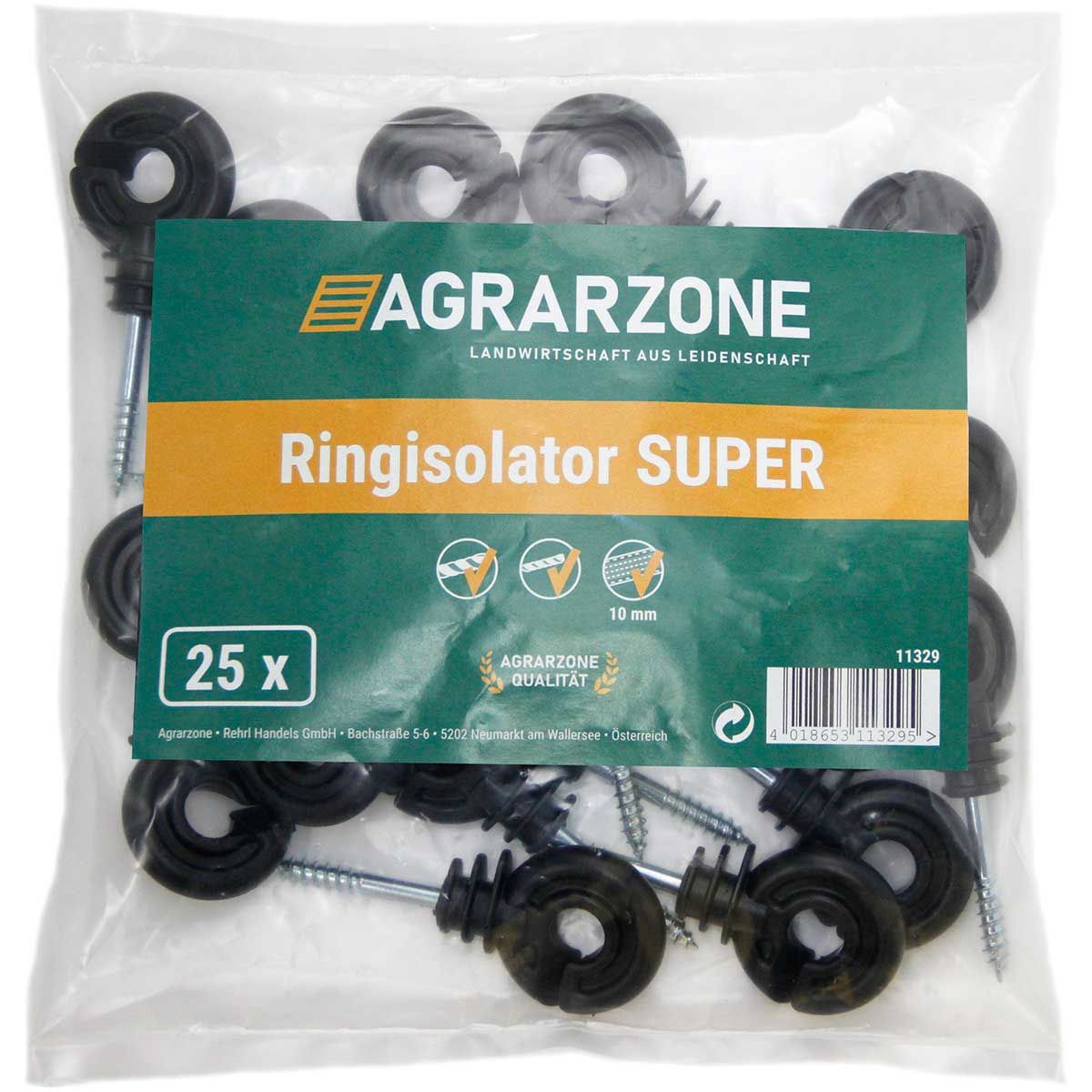 25x Agrarzone izolator inelar SUPER negru - izolatorul pentru garduri de pășune pentru benzi, frânghii și toroane