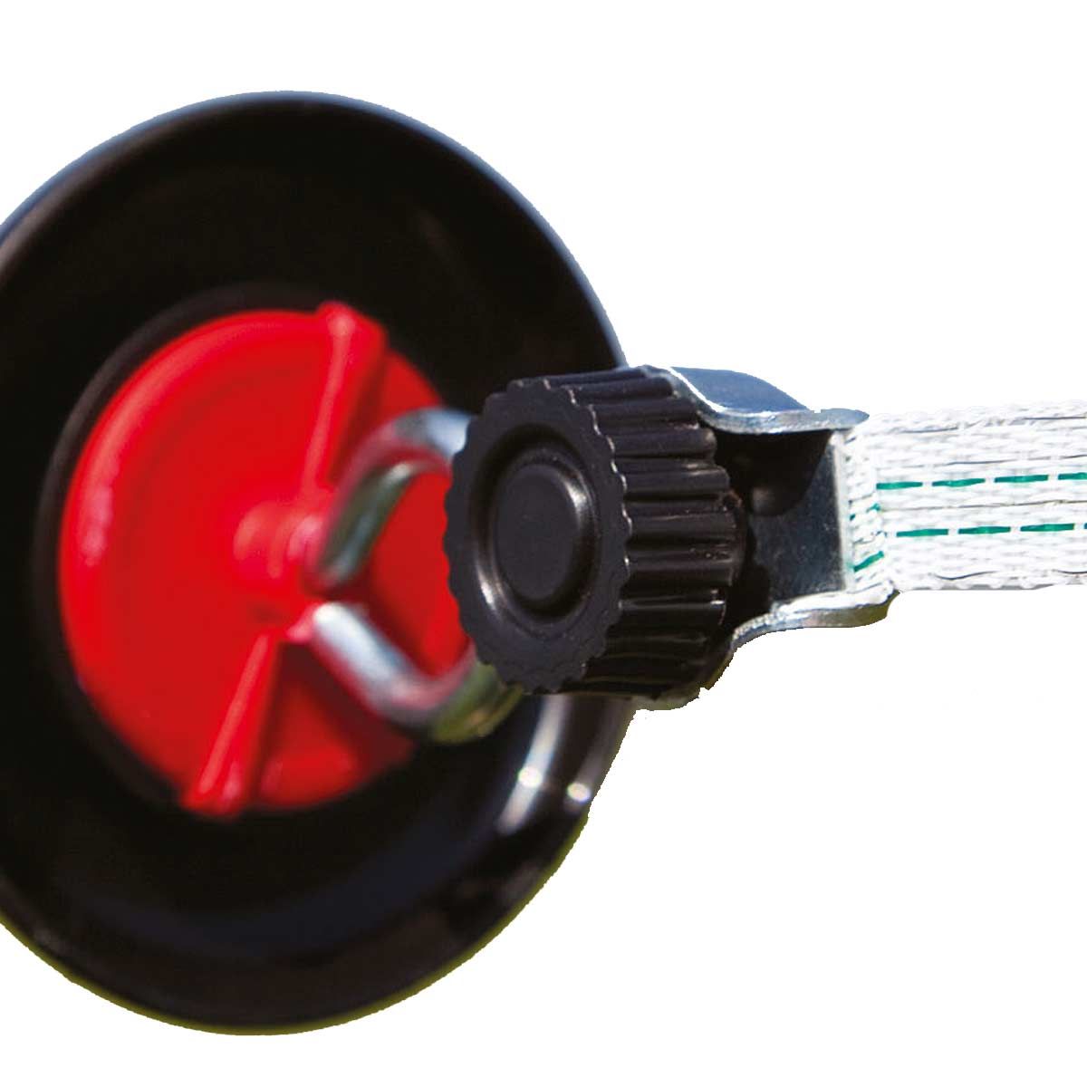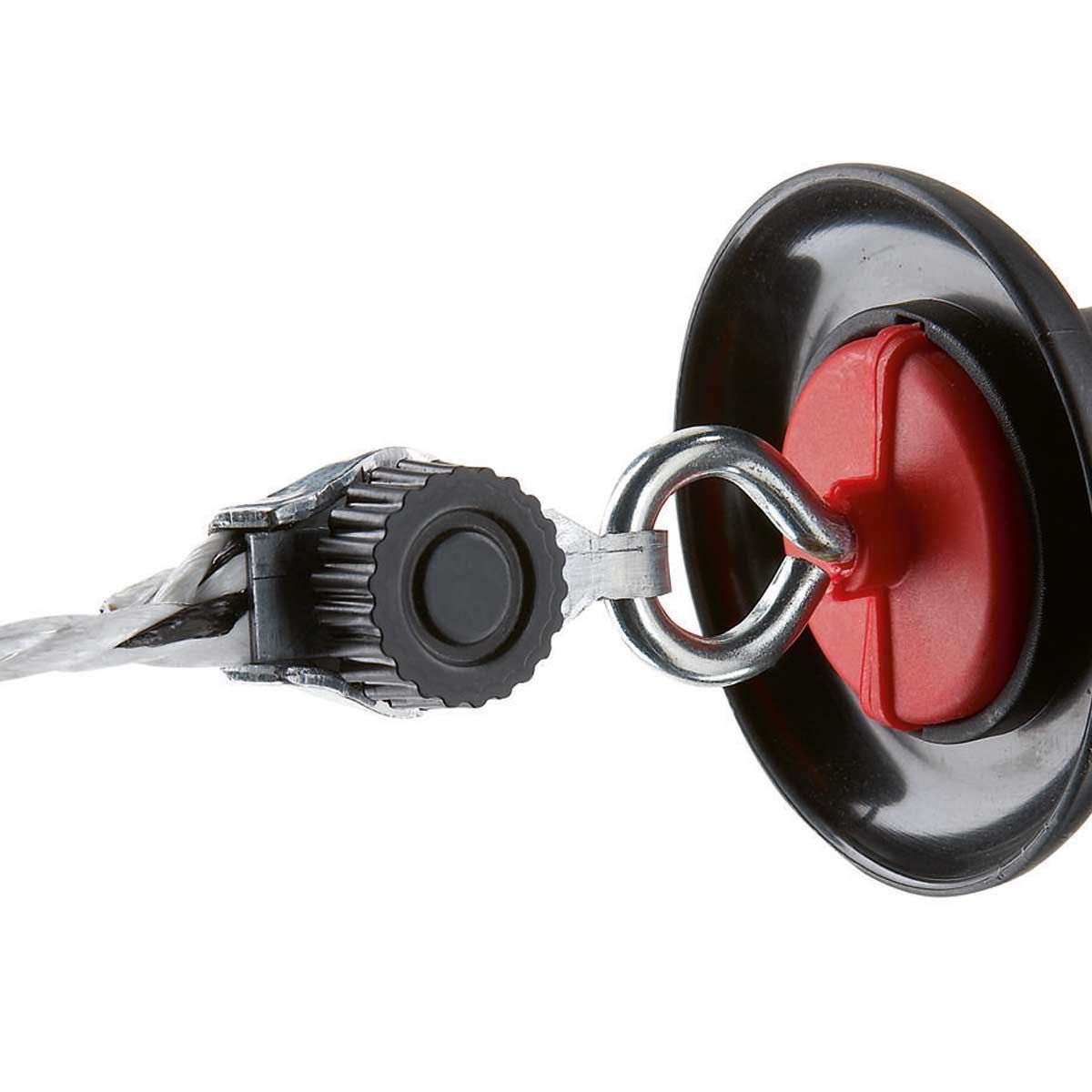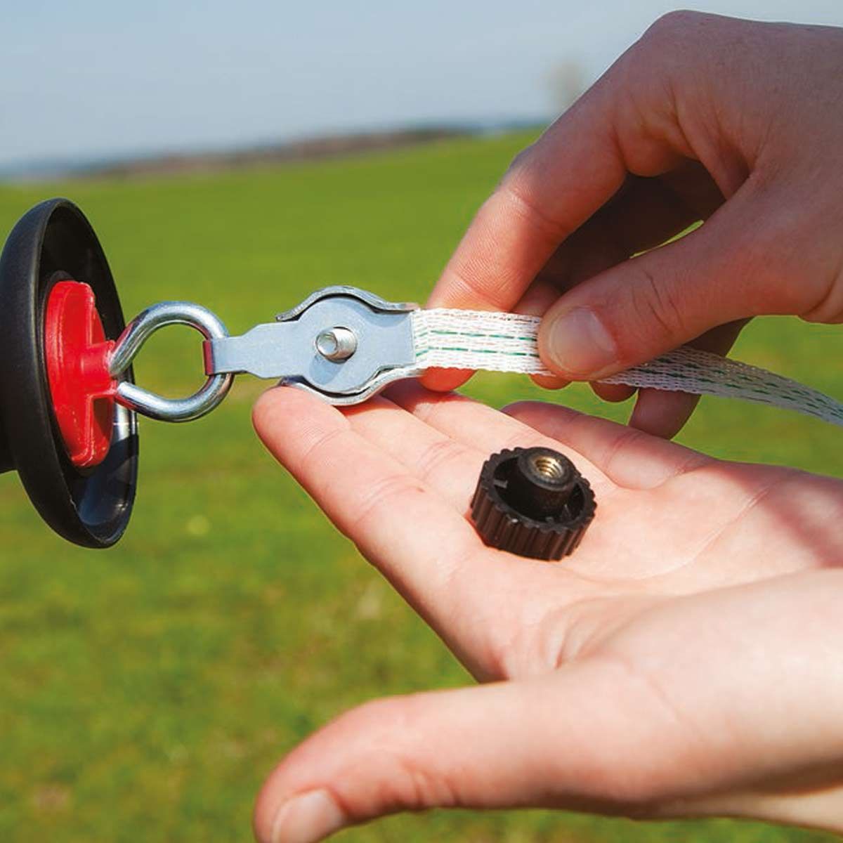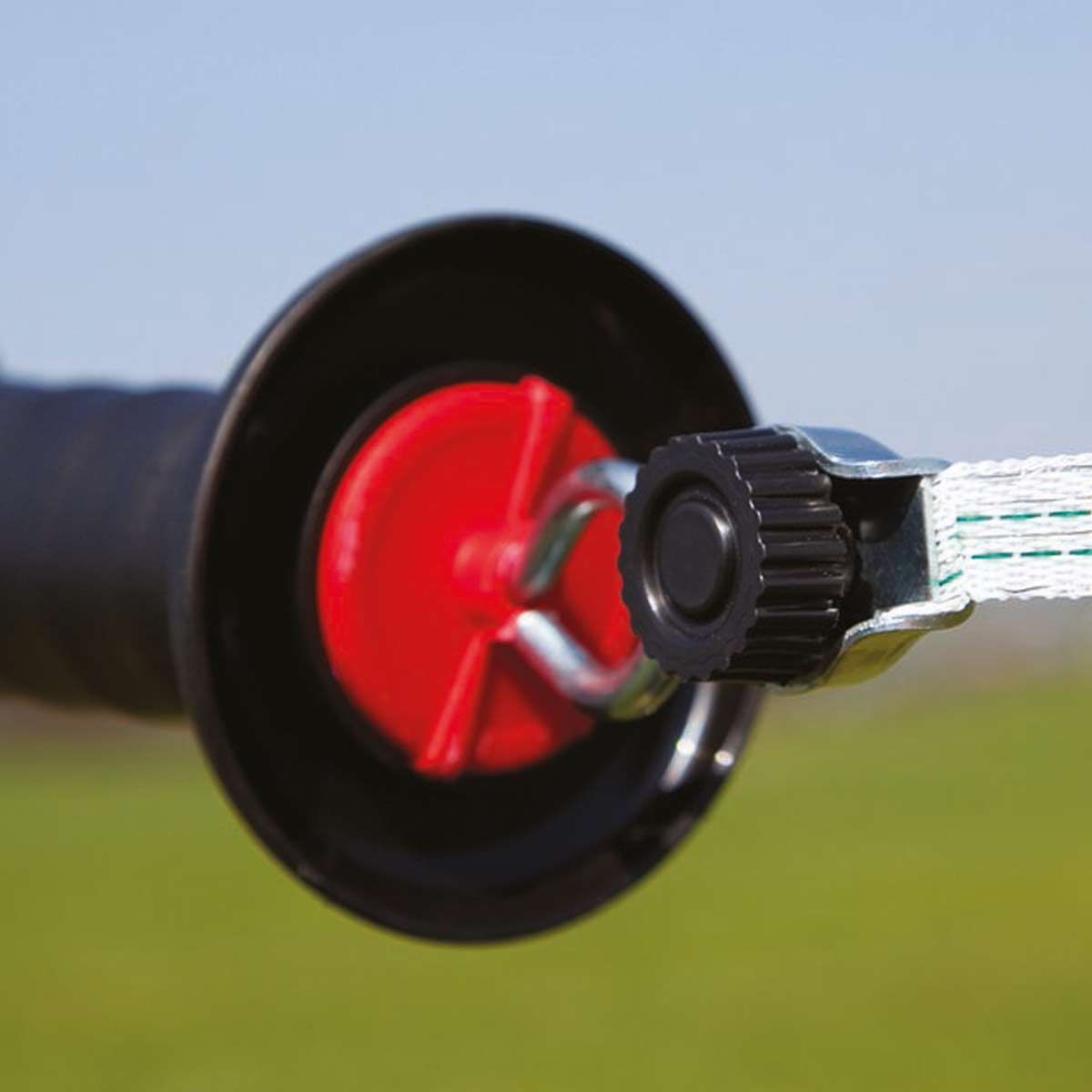 Marele avantaj: nu aveți nevoie de unelte și puteți realiza cu ușurință o conexiune electrică optimă cu ajutorul șurubului de fixare. Acest sistem este, de asemenea, ideal pentru retensionare. Această conexiune asigură o conductivitate electrică optimă și sporește siguranța pentru turmă a gardului electric pentru pășuni.