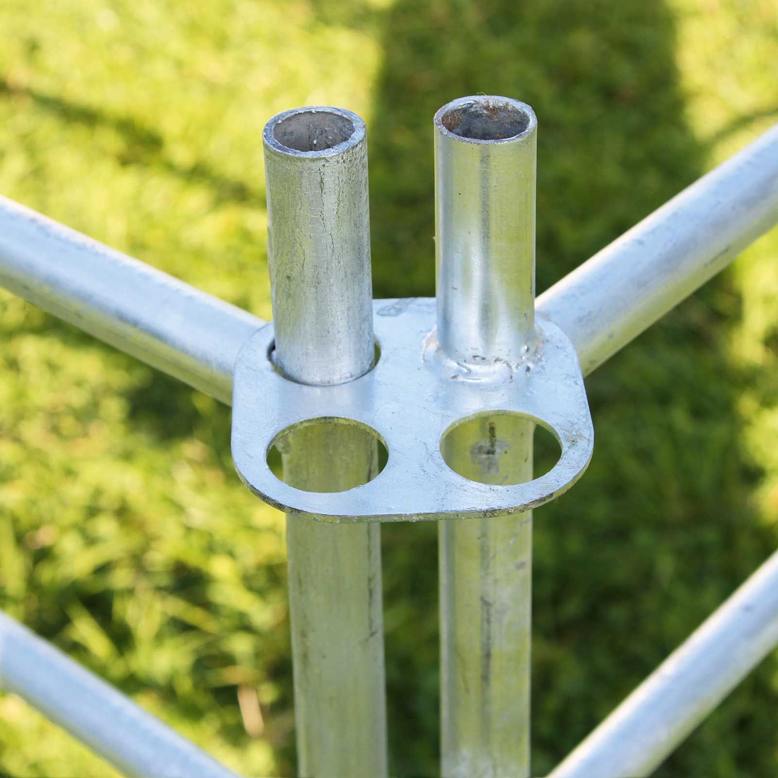 Setul de panouri plug-in inspiră prin asamblarea și dezasamblarea fără efort și este ideal pentru pășunatul oilor și caprelor. Zonele de pre-recoltare, țarcurile, țarcurile individuale și de grup sau partițiile de țarc pot fi configurate foarte rapid și flexibil cu cele 4 panouri pentru oi. Dacă doriți să vă extindeți, puteți ajusta panourile în funcție de necesități și puteți adăuga altele pentru a oferi și mai mult spațiu. Orice număr de panouri pot fi combinate între ele. 7 tuburi transversale cu spațiere din ce în ce mai mare de jos în sus, împiedică mieii să alunece prin ele. Fabricat din tuburi de oțel galvanizat la cald, acest panou pentru oi promite un grad ridicat de stabilitate, rezistență la intemperii și durabilitate.