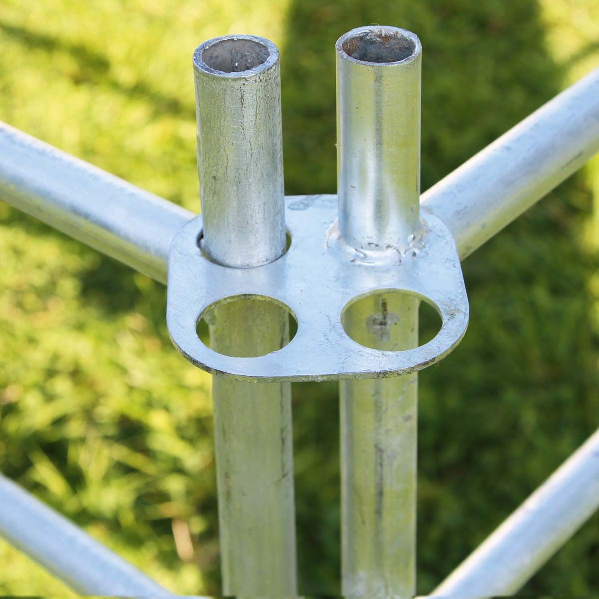 Panoul pentru oi cu poartă este ideal pentru accesul în siguranță la animalele dumneavoastră. Poarta are o lățime de trecere de 57 cm și este cea mai bună modalitate de a asigura accesul la turmă. Setul pentru turmă cu conectare inspiră prin asamblarea și dezasamblarea fără efort și este ideal pentru a păzi oile și caprele. Zonele de pre-recoltare, țarcurile, țarcurile individuale și de grup sau partițiile de țarc pot fi configurate foarte rapid și flexicu cele 4 panouri pentru oi. Dacă doriți să vă extindeți, puteți ajusta panourile în funcție de necesități și puteți adăuga altele pentru a oferi și mai mult spațiu. Orice număr de panouri pot fi combinate între ele. 7 tuburi transversale cu spațiere din ce în ce mai mare de jos în sus, împiedică mieii să alunece prin ele. Fabricat din tuburi de oțel galvanizat la cald, acest panou pentru oi promite un grad ridicat de stabilitate, rezistență la intemperii și durabilitate.