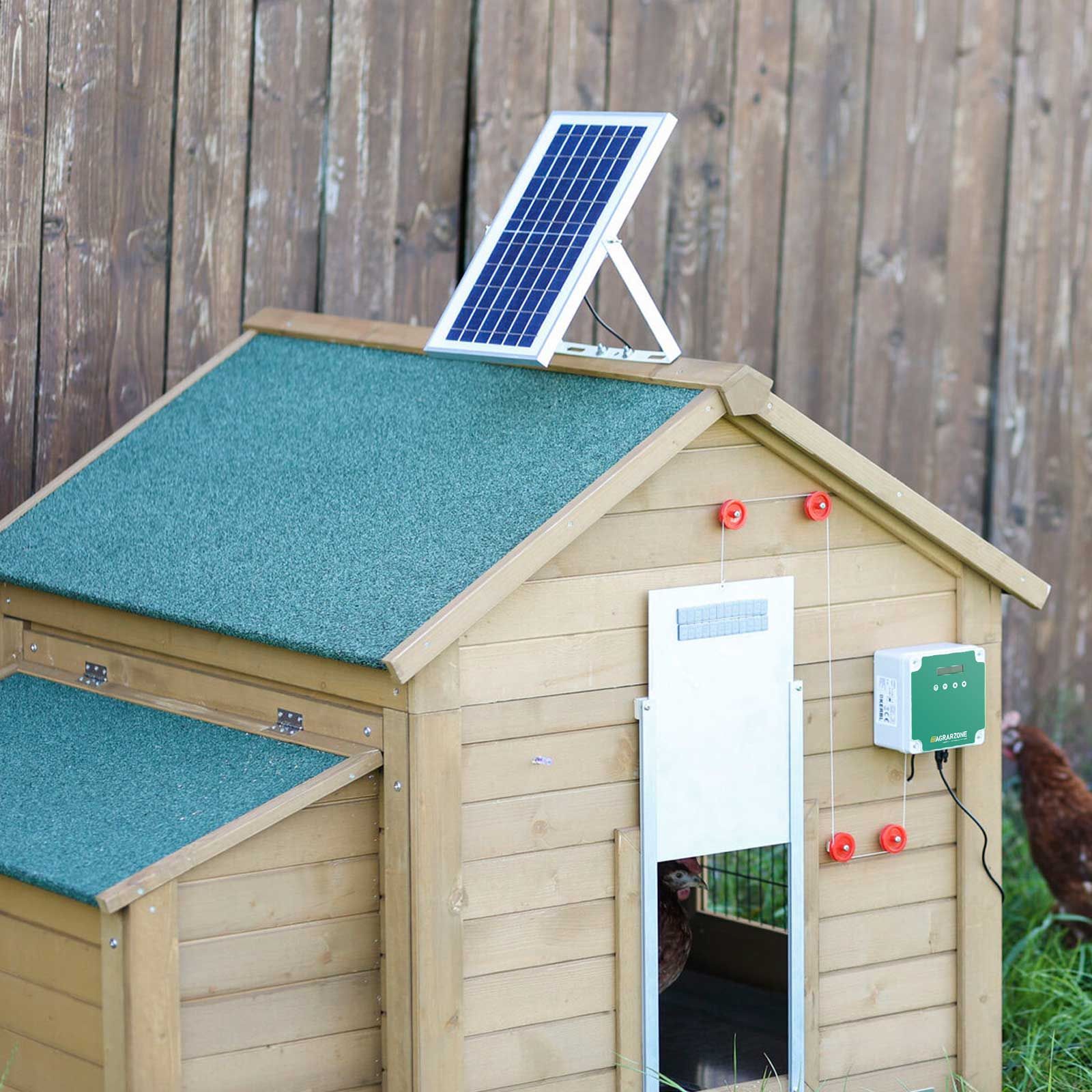 - Clapetă solară automată pentru păsări cu cursor 30 x 40 cm (adecvată pentru creșterea în scopuri comerciale conform TierschNutztV)