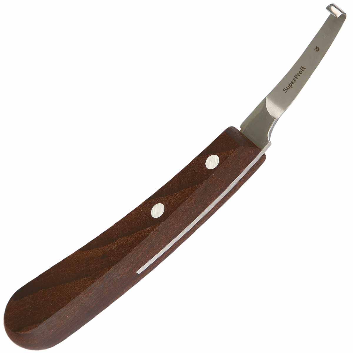 Cuțitul pentru profesioniștii din domeniul îngrijirii copitelor și a potcovarilor, precum și pentru toți cei care au nevoie de un instrument perfect pentru îngrijirea copitelor și a ghearelor! Cuțitul pentru copite SuperProfi de la Kerbl este un cuțit pentru copite cu tăiere pe stânga sau pe dreapta , special pentru stângaci sau dreptaci. Mânerul ergonomic din lemn de fag asigură o muncă puțin obositoare. Lama extra ascuțită din oțel special garantează o durată de viață și o ascuțire îndelungată.
