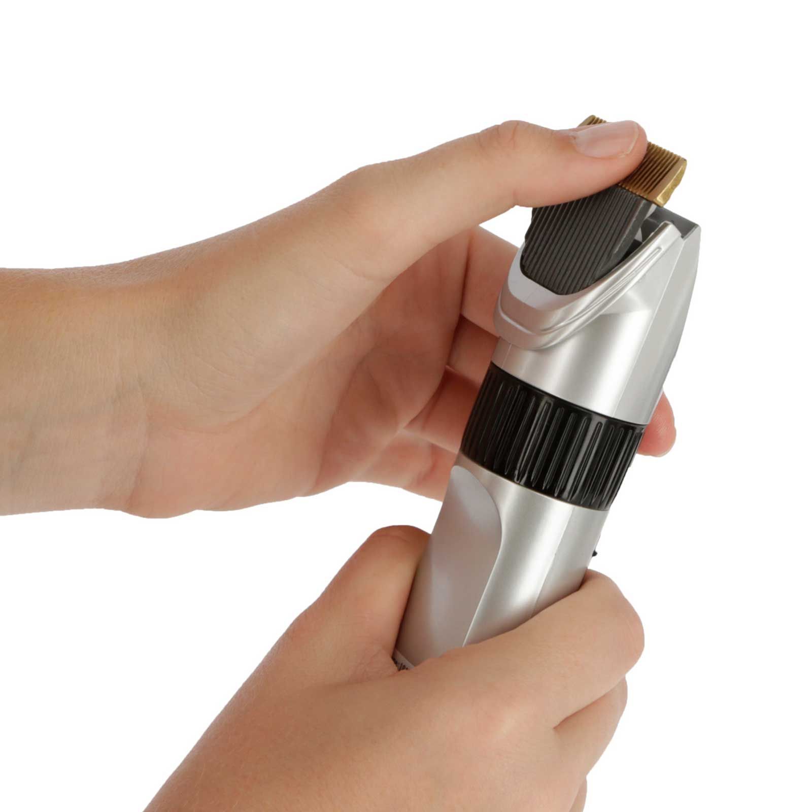 Bateria reîncărcabilă a mașinii de tuns cu acumulator este deosebit de puternică și asigură o muncă plăcută chiar și pe perioade mai lungi de timp. Cu reglarea înălțimii de tuns în 5 trepte, între 0,8 și 2,0 mm, puteți adapta individual lungimea de tundere la animalul dumneavoastră. Cei patru piepteni de fixare incluși vă oferă o ajustare individuală și mai mare, între 3 și 12 mm înălțime de tăiere. Onyx este perfectă pentru tunderea în detaliu și este alimentată de baterii de 3 volți. Puterea motorului este deosebit de puternică la 6900 rpm.