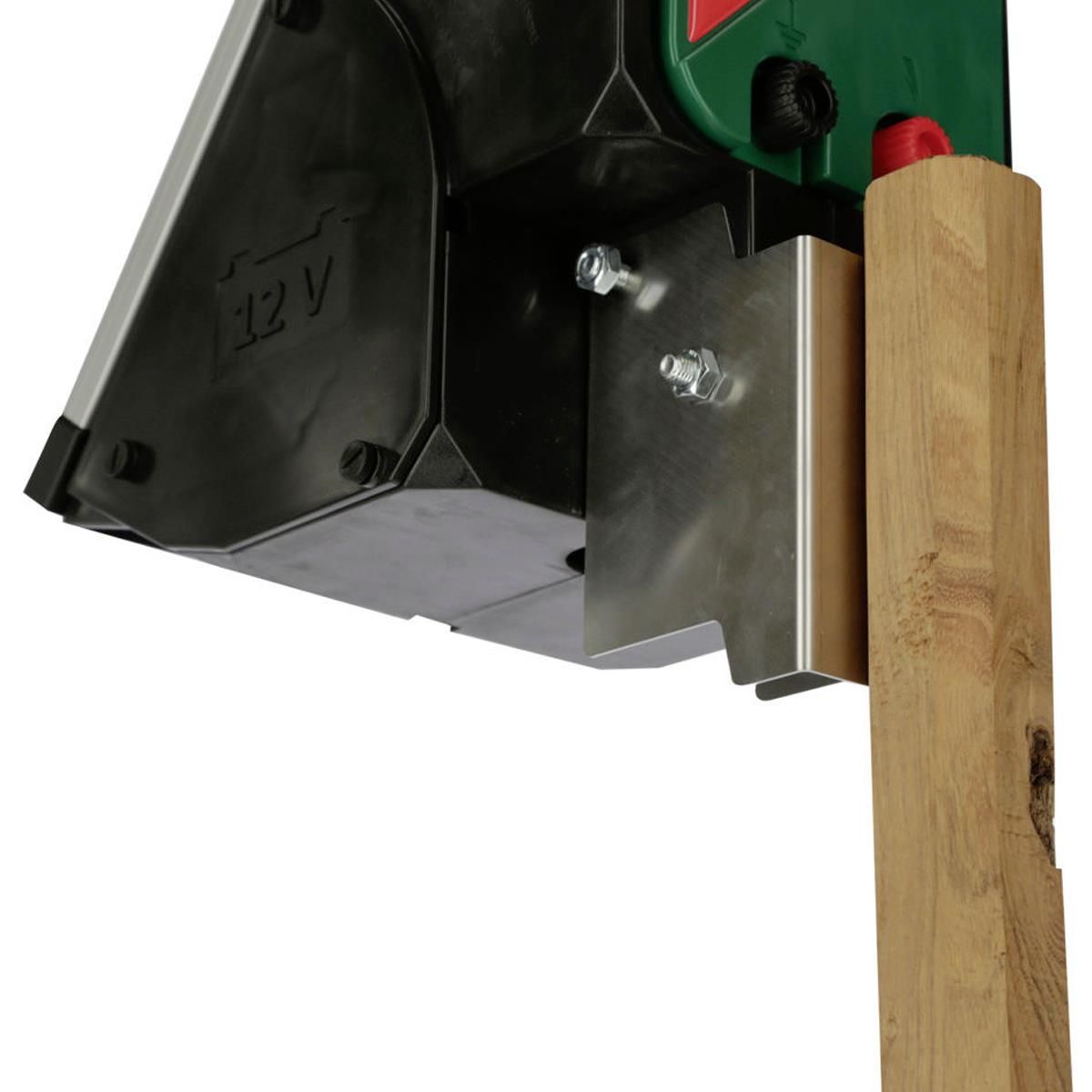 Suportul special pentru țăruși de lemn este ideal pentru generatoarele alimentate cu energie solară Sun Power. Suportul din oțel inoxidabil este potrivit pentru montarea pe țărușul de lemn.