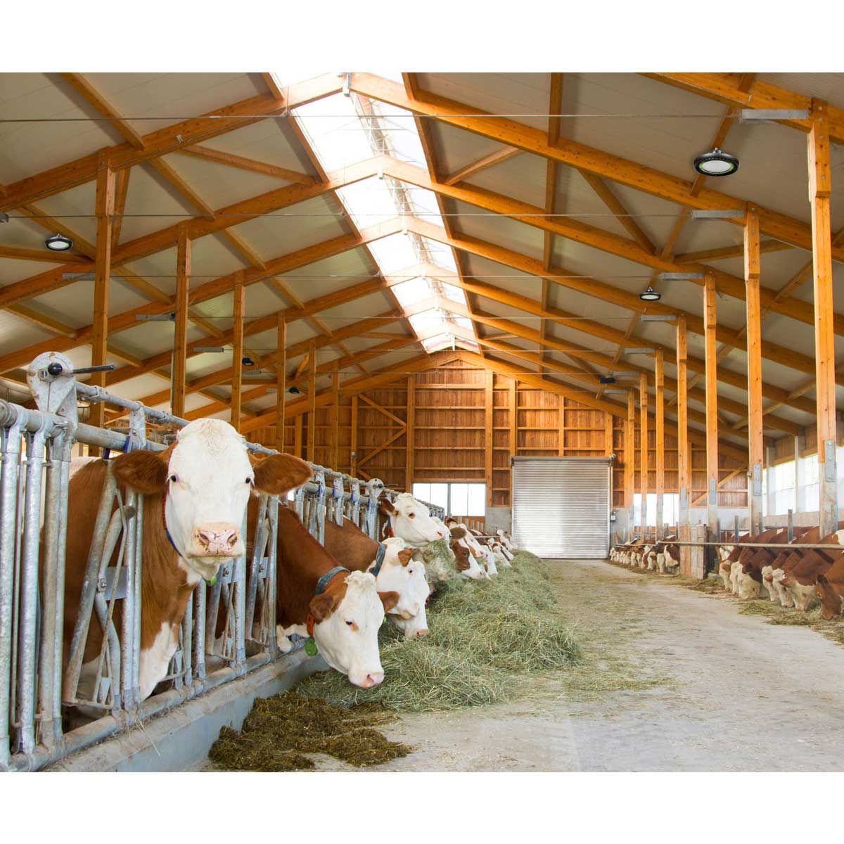 Spotul cu LED-uriKerbl LED high bay este un corp de iluminat cu LED-uri eficient pentru iluminarea grajdurilor, a halei de echitație, a halei industriale și a depozitelor. Aparatul de iluminat de tip high bay este ideal pentru construcțiile cu tavan înalt. LED-urile funcționează cu un grad ridicat de eficiență și, prin urmare, sunt foarte eficiente, astfel încât eficacitatea lor luminoasă este deosebit de ridicată. Deși costurile de investiție pentru echipamente noi sau pentru modernizare sunt, în general, încă mai mari în prezent, în comparație cu tehnologia de iluminat convențională, acestea sunt amortizate după o perioadă scurtă de timp datorită economiilor considerabile în exploatare.