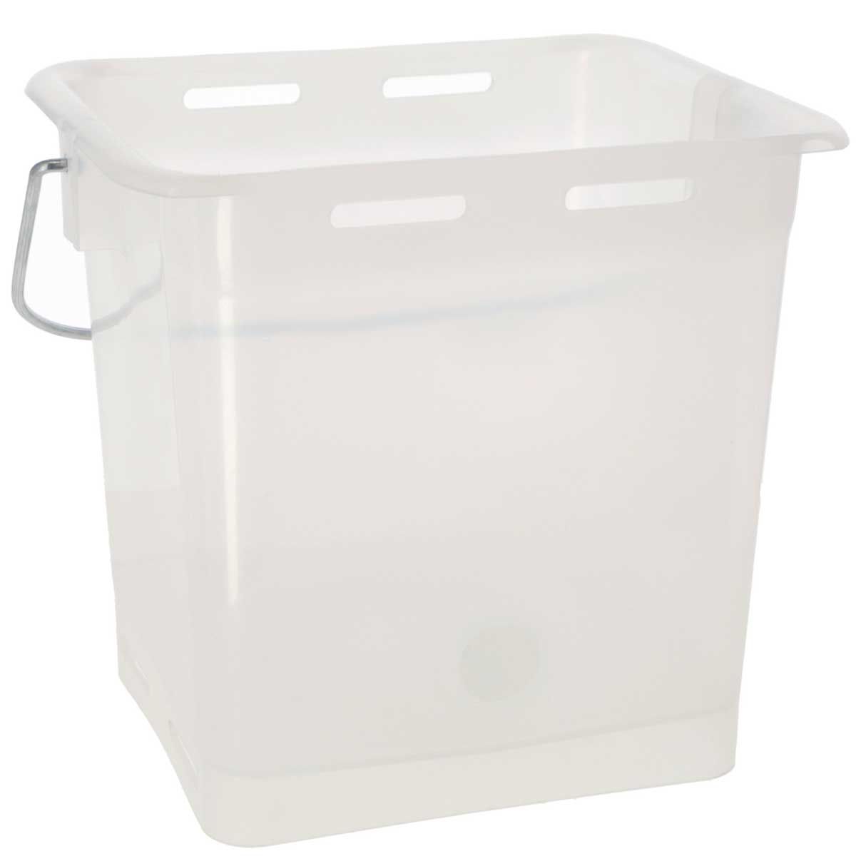 Această găleată de adăpat este disponibilă în diferite culori transparente (alb, galben, roz, albastru).