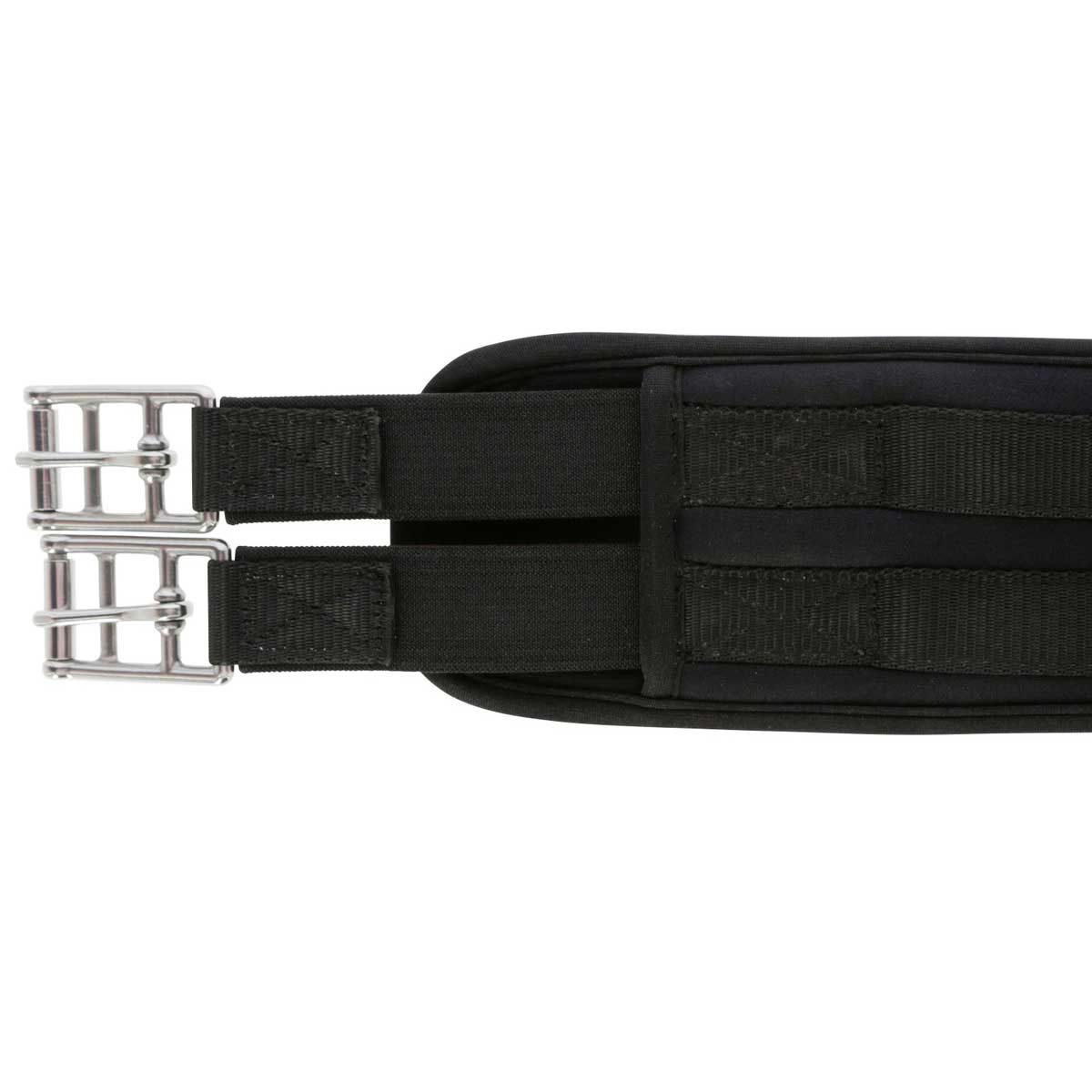 Frumoasa chingă de șa este echipată cu o spumă moale cu memorie, care se adaptează perfect la contururile calului și astfel se potrivește în siguranță și flexiîn jurul burții. Șaua de șa moale este întărită pe tot parcursul și este foarte stabilă. Banda elastică de culoare deschisă ușurează încordarea și previne presiunea pe centură. Centura este fixată cu catarame cu role.