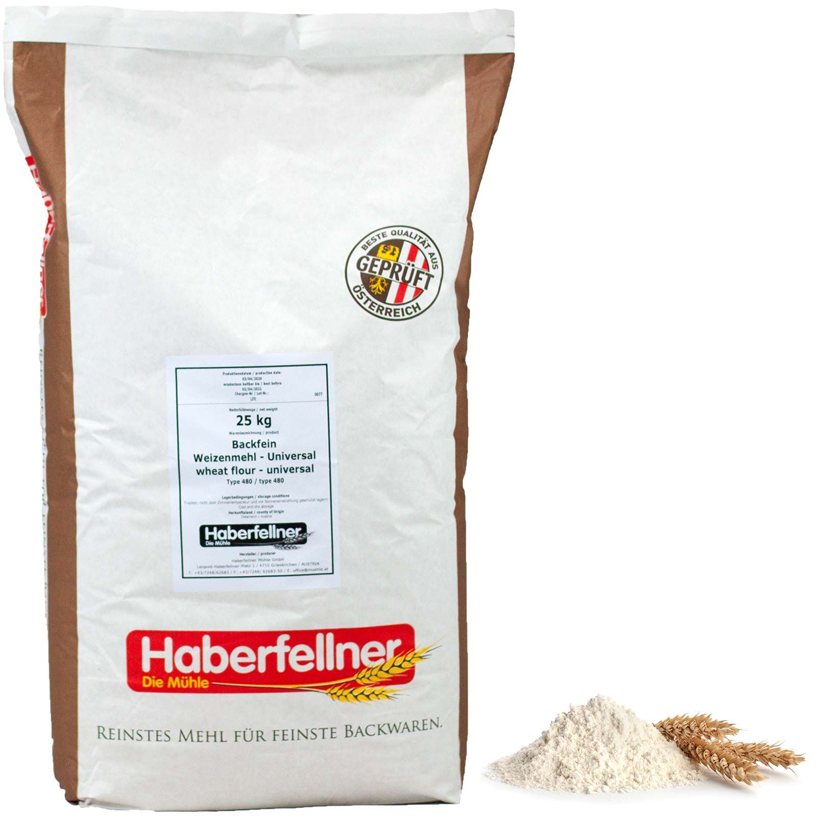 Făina de grâu Haberfellner de tip 405 (conform clasificării Germaniei) / W 480 (conform clasificării Austriei) universal este unul dintre clasicii făinurilor de uz casnic și ai făinurilor pentru prăjituri. Făina de grâu poate fi folosită pentru orice rețetă în care nu sunteți sigur ce făină să folosiți - fie că este simplă sau de semolă. Pentru făina de grâu se folosește numai grâu austriac . Grâul este garantat fără OMG și este strict controlat cu pesticide . Făina de grâu tip 405 / W 480 universal este idealăpentru producția de produse de patiserie, prăjituri, plăcinte, biscuiți, pentru legarea sosurilor și pentru toate aluaturile.