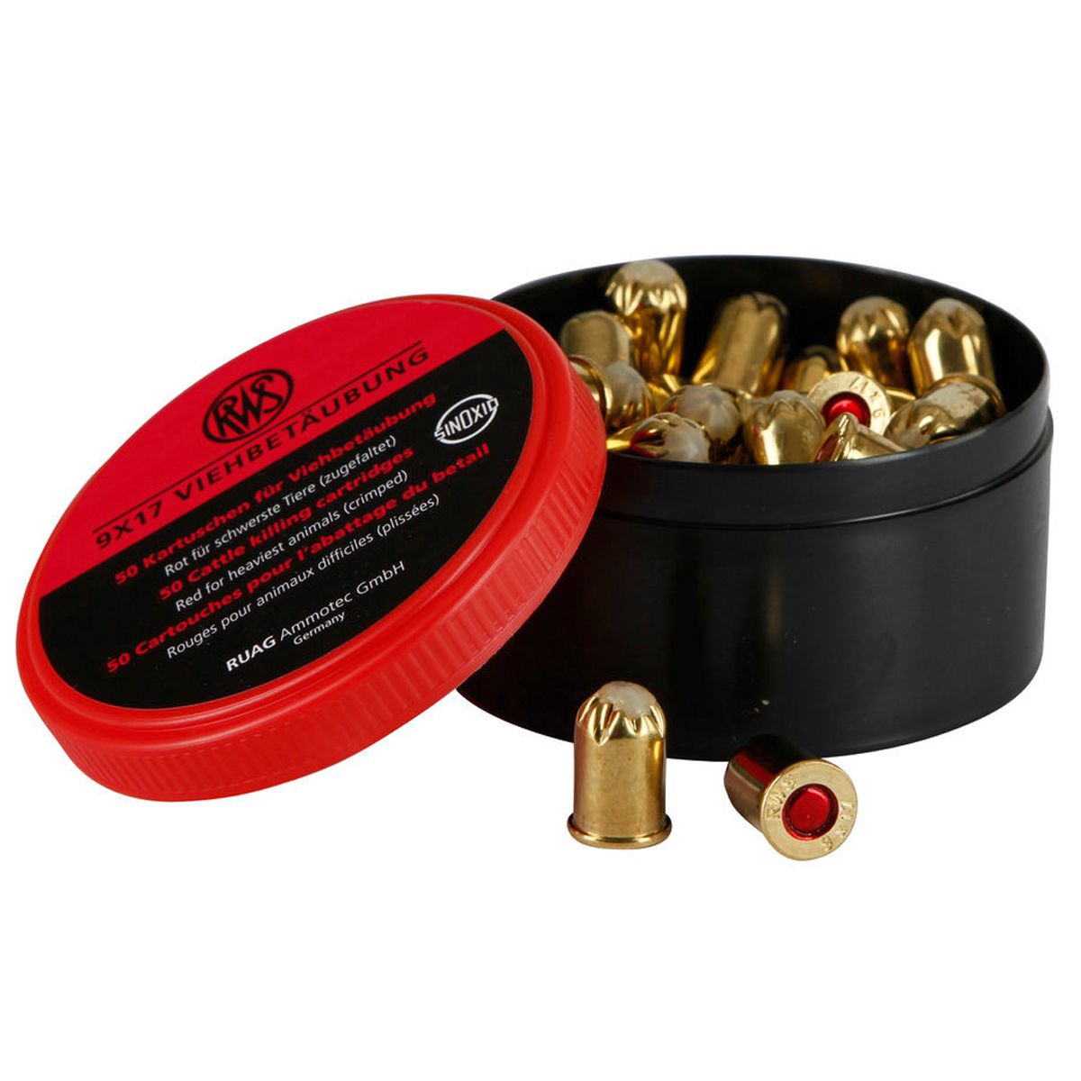 Indiferent dacă este vorba de animale ușoare sau grele, cu cartușele pentru pistolul de asomare a animalelor RWS puteți asoma orice animal în câteva secunde. Aceste cartușe RWS Sinoxid sunt potrivite pentru purcei, oi, porci, boi, tauri, vaci și cai. Aceste cartușe se disting prin siguranța deosebită și calitatea înaltă a execuției. Aceste cartușe speciale sunt potrivite pentru dispozitivul de tragere Blitz și pentru toate dispozitivele obișnuite de asomare a animalelor de calibru 9x17.