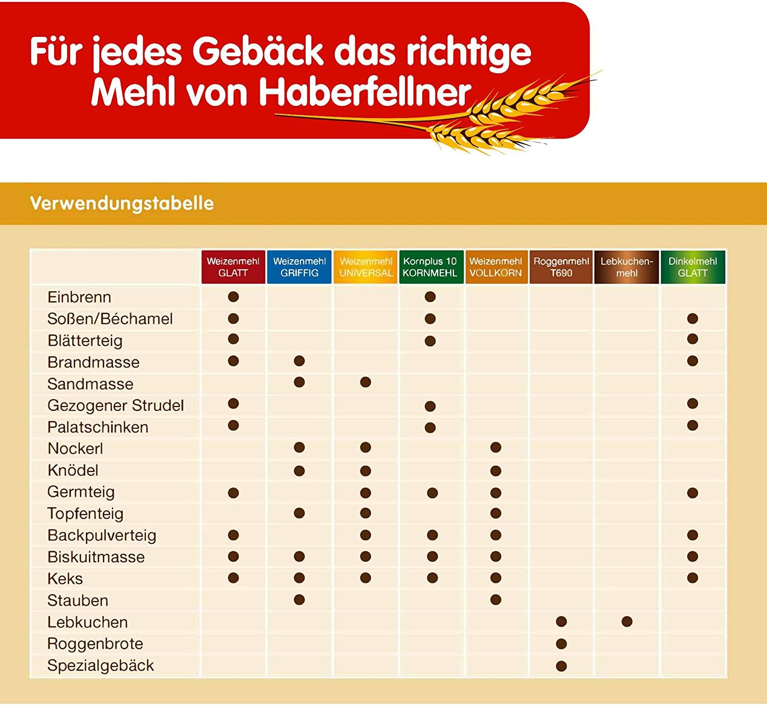 Haberfellner făină de grâu 550 / W 700 optimă dintr-o privire: