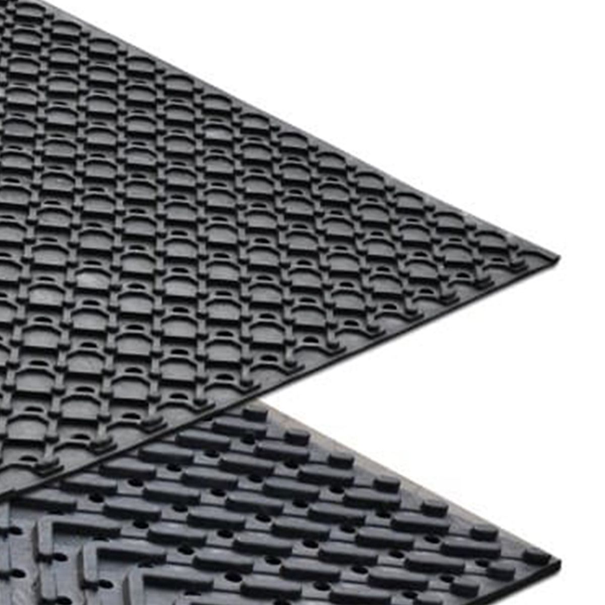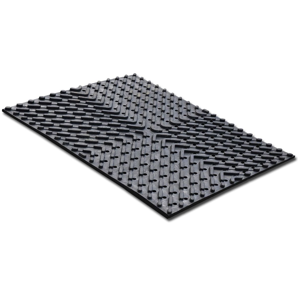 Covorașele perforate din cauciuc drenează solul extrem de eficient și mai bine decât plăcile convenționale pentru padocuri datorită drenajului transversal integrat. Datorită aranjamentului special al canalelor de drenaj, orice apă care apare poate fi drenată și sub covor. Spațiul liber dintre foaia structurală și suprafața de drenaj permite crearea unui pernaj de aer care izolează fonic și termic, care protejează hidroizolația de stresul termic și asigură, de asemenea, o distribuție uniformă a sarcinii pe hidroizolație. Sunt posibile construcțiile cu șapă în combinație cu dale sau plăci ca acoperire superioară, precum și construcțiile cu pietriș, pietriș sau rulmenți.