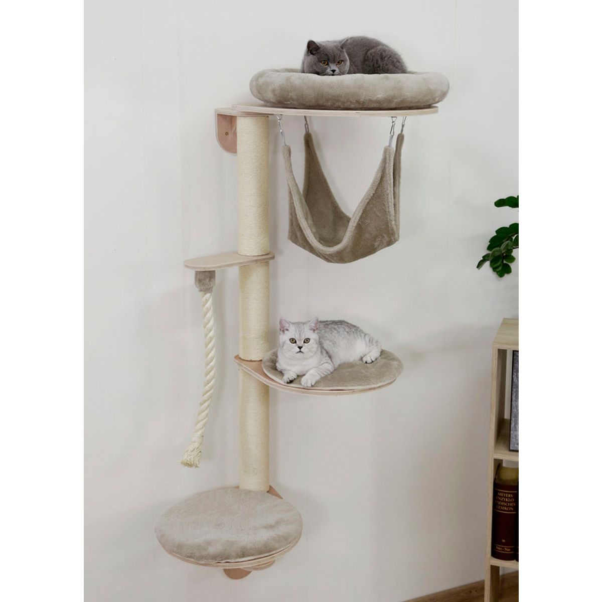 Moderner Wandkratzbaum für Katzen inkl. Hängematte, Sisalstämme, Spielseil & Plattform mit Kuschelbett - zum Spielen, Toben und Entspannen.