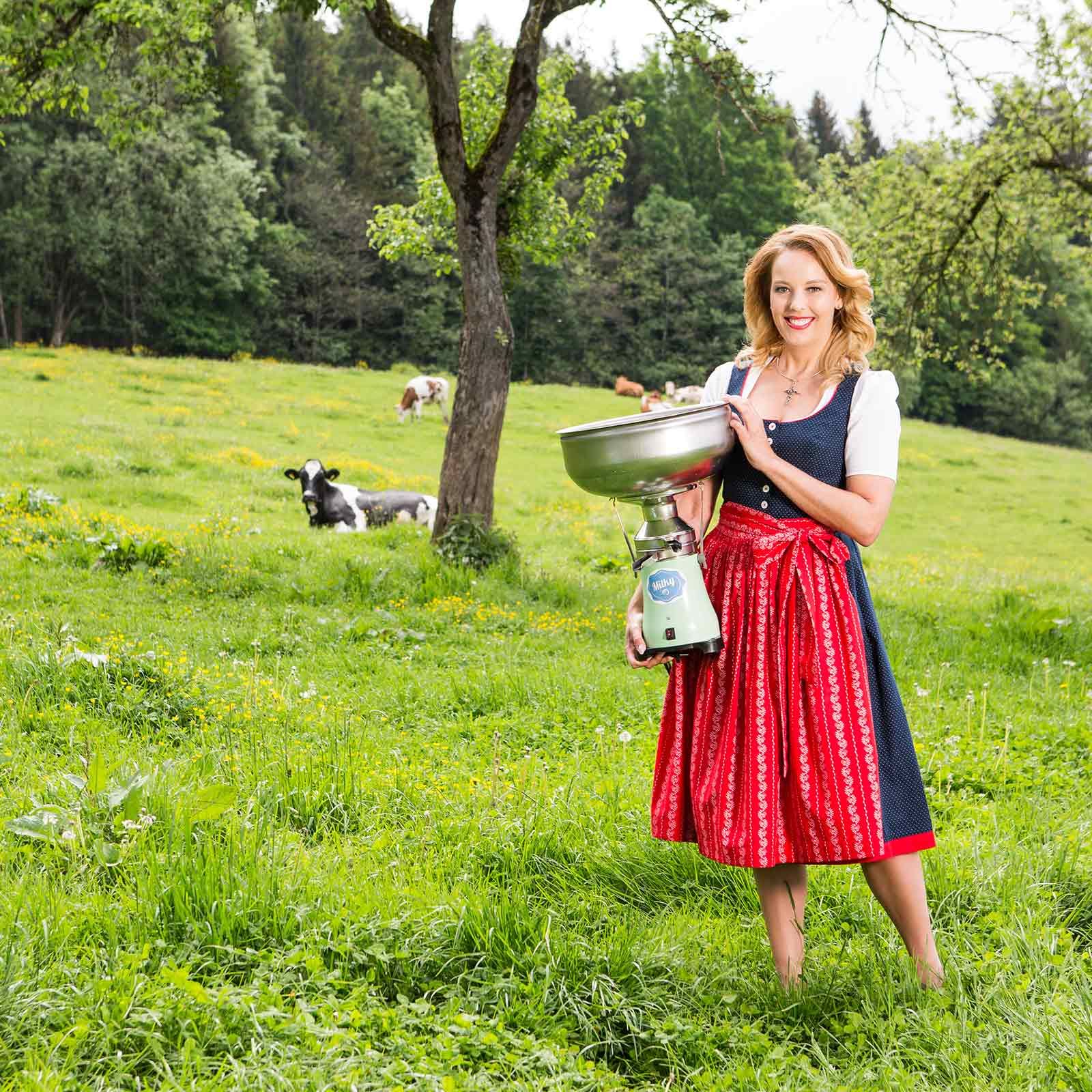 Cu ajutorul șurubului pentru smântână, grosimea smântânii poate fi ajustată la aproximativ 8% până la 12%, în funcție de calitatea laptelui. Picioarele robuste din cauciuc, potrivite și pentru montarea pe masă, asigură o funcționare fără vibrații.